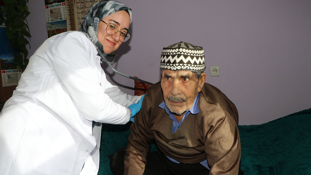 Çaldıran Devlet Hastanesi Evde Sağlık Hizmetleri Birim Sorumlusu Pratisyen Dr. Didem Durgun, Türkiye'nin en zorlu coğrafyalarından birinde görev yaptıklarını belirterek, "Evde Sağlık Hizmetleri doktoruyum. Zorlu kış şartlarında yatağa bağımlı, yaşlı ve kronik hastalığı bulunan hastalarımızı evlerinde ziyaret ederek, gerekli sağlık taramalarını yapıyoruz. Gerekli durumlarda uzman doktorlarımızla online olarak hastalarımızı birlikte değerlendiriyoruz. Mezun olduktan sonra ilk görev yerim memleketim Van oldu. Türkiye'nin en soğuk ilçelerinden birinde görev yapıyoruz. Bazı günler hava sıcaklığı eksi 30 derecenin altına düşüyor" dedi.