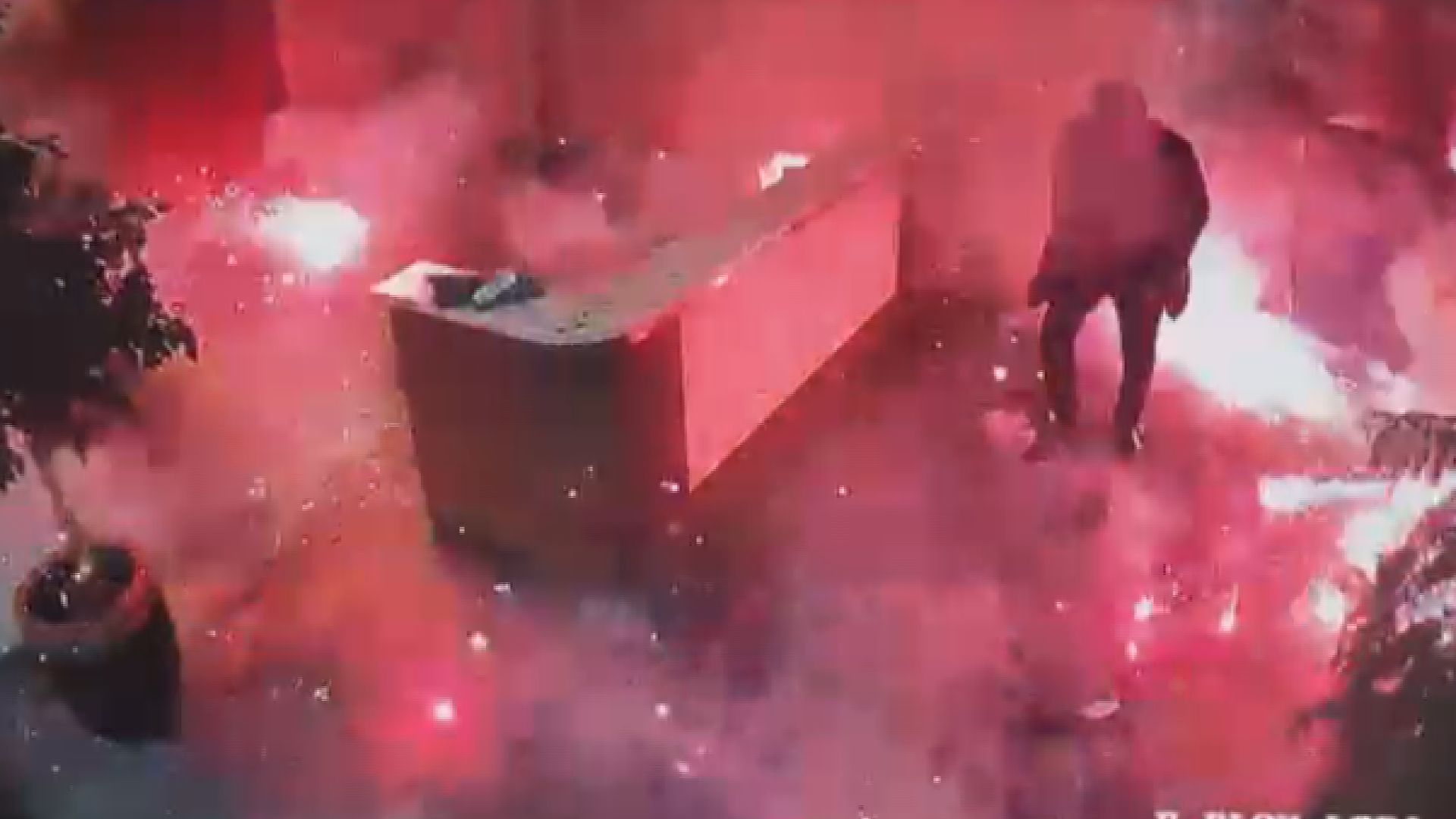 Patlamanın şiddetiyle odadaki eşyalar savrulurken, içeride bulunanların büyük bir panikle dışarı kaçtığı anlar kayıtlara geçti.
