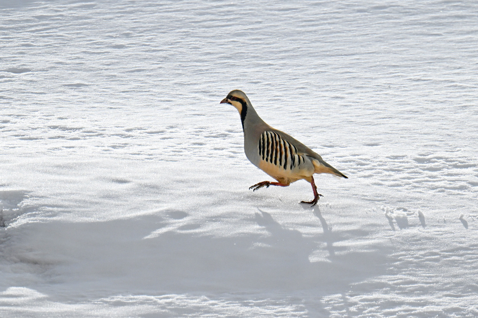 Van'ın Başkale ilçesinin kırsalında kınalı keklikler, karla kaplanmış arazide yiyecek ararken görüntülendi.