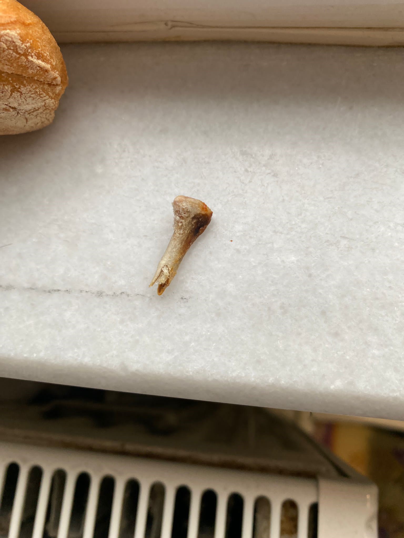 Tekirdağ'ın Çerkezköy ilçesinde faaliyet gösteren bir bakkaldan satın alınan ekmeğin içinden çıkan kemik, görenleri şaşkına çevirdi.