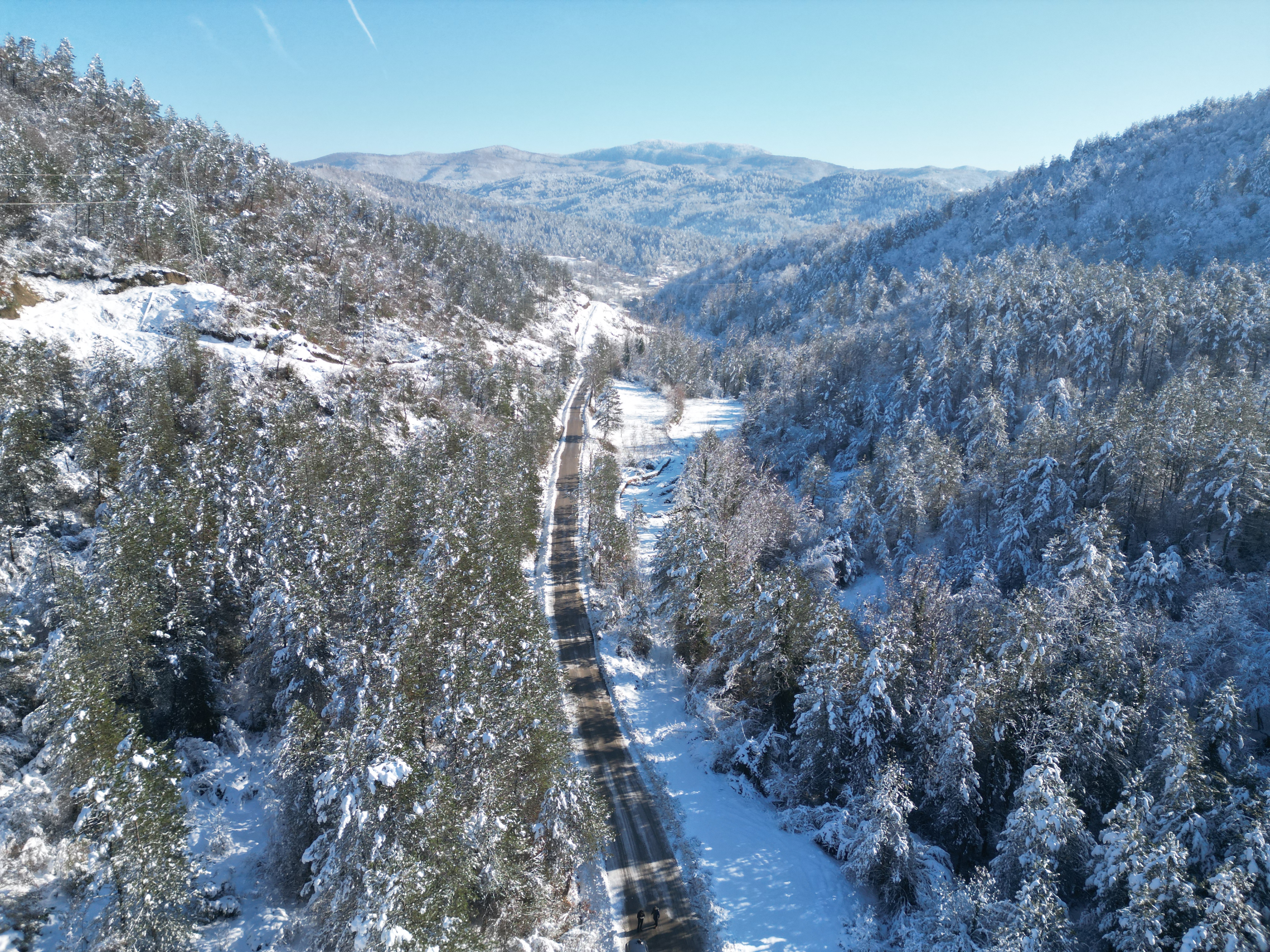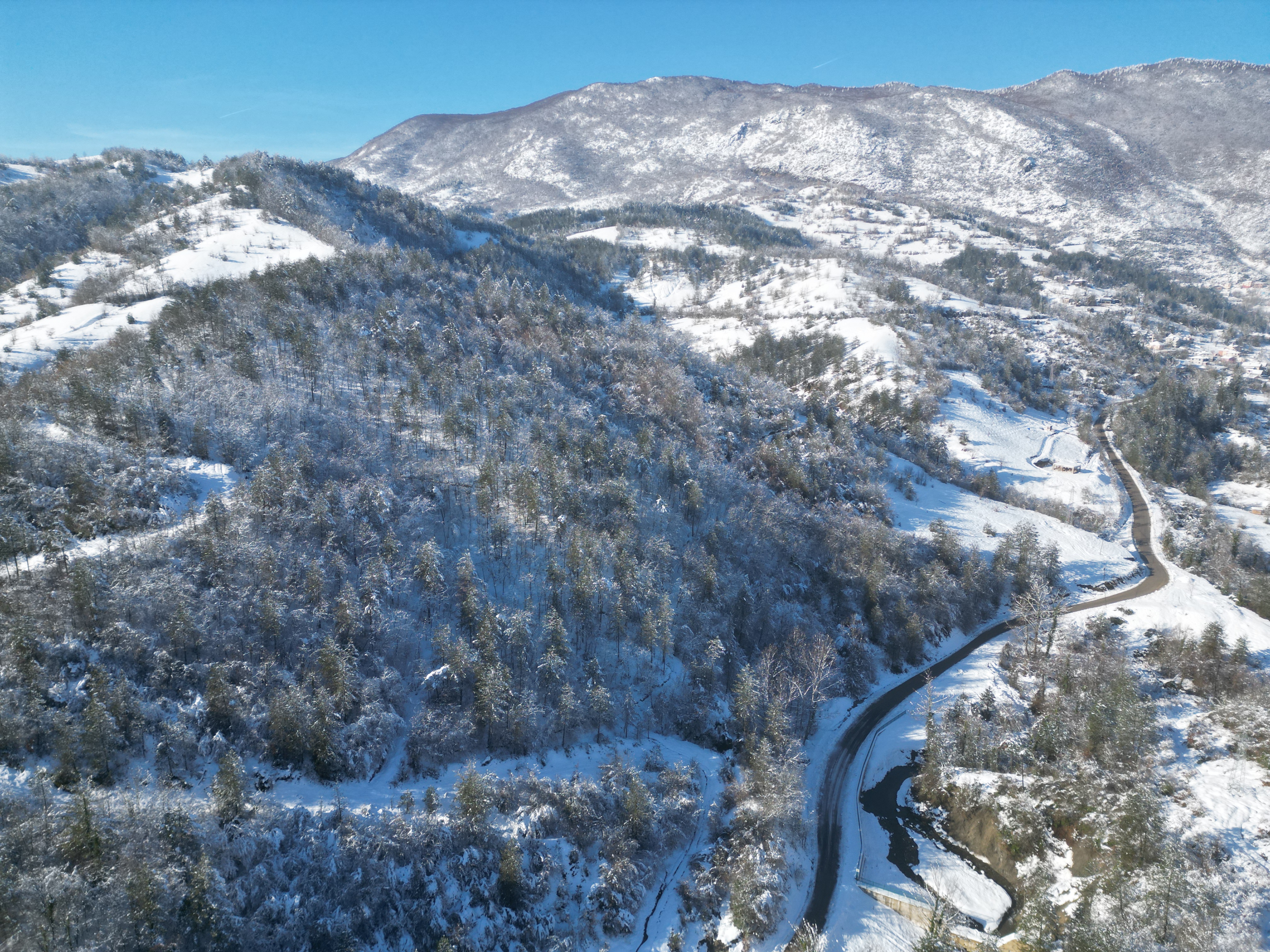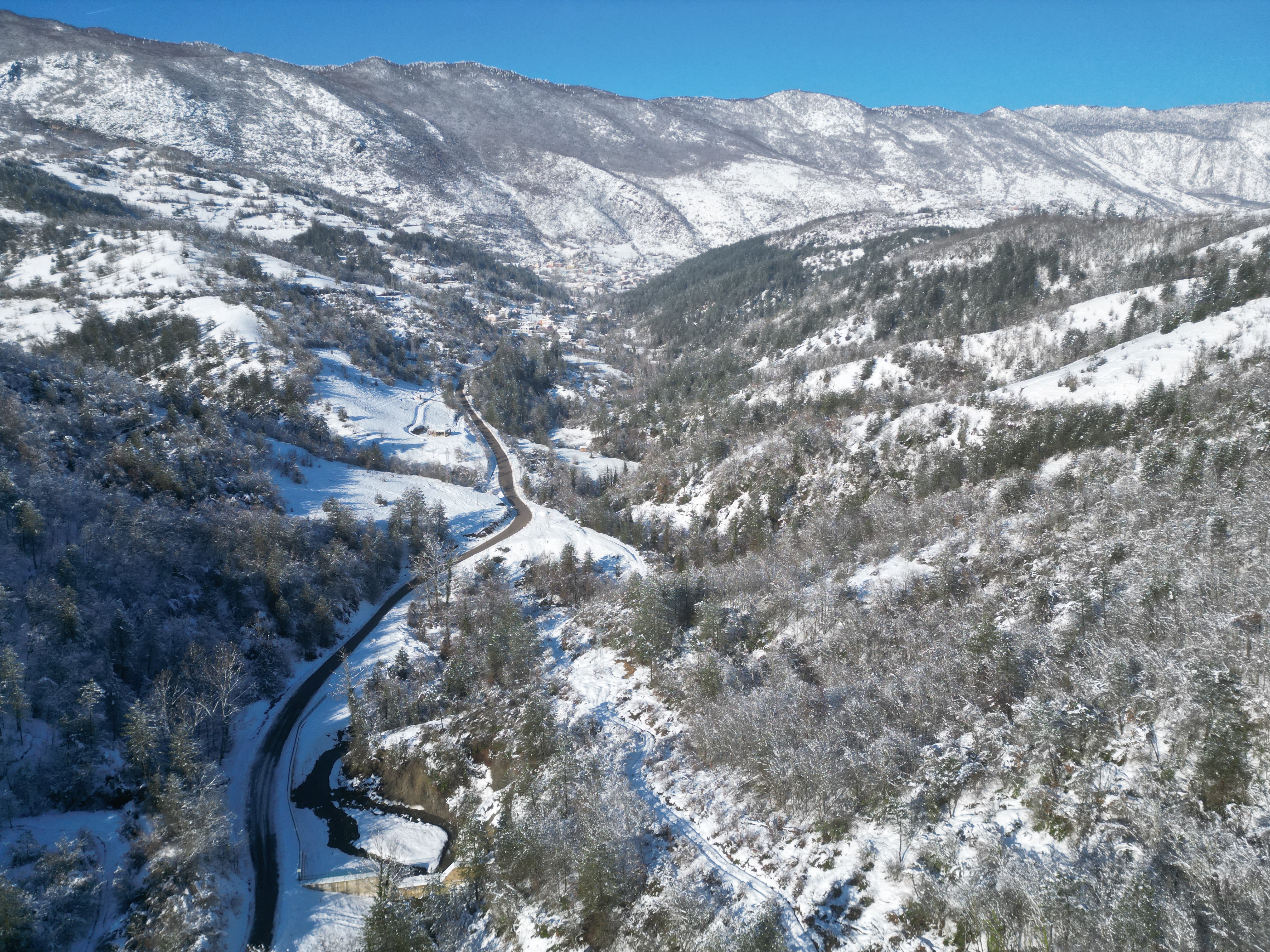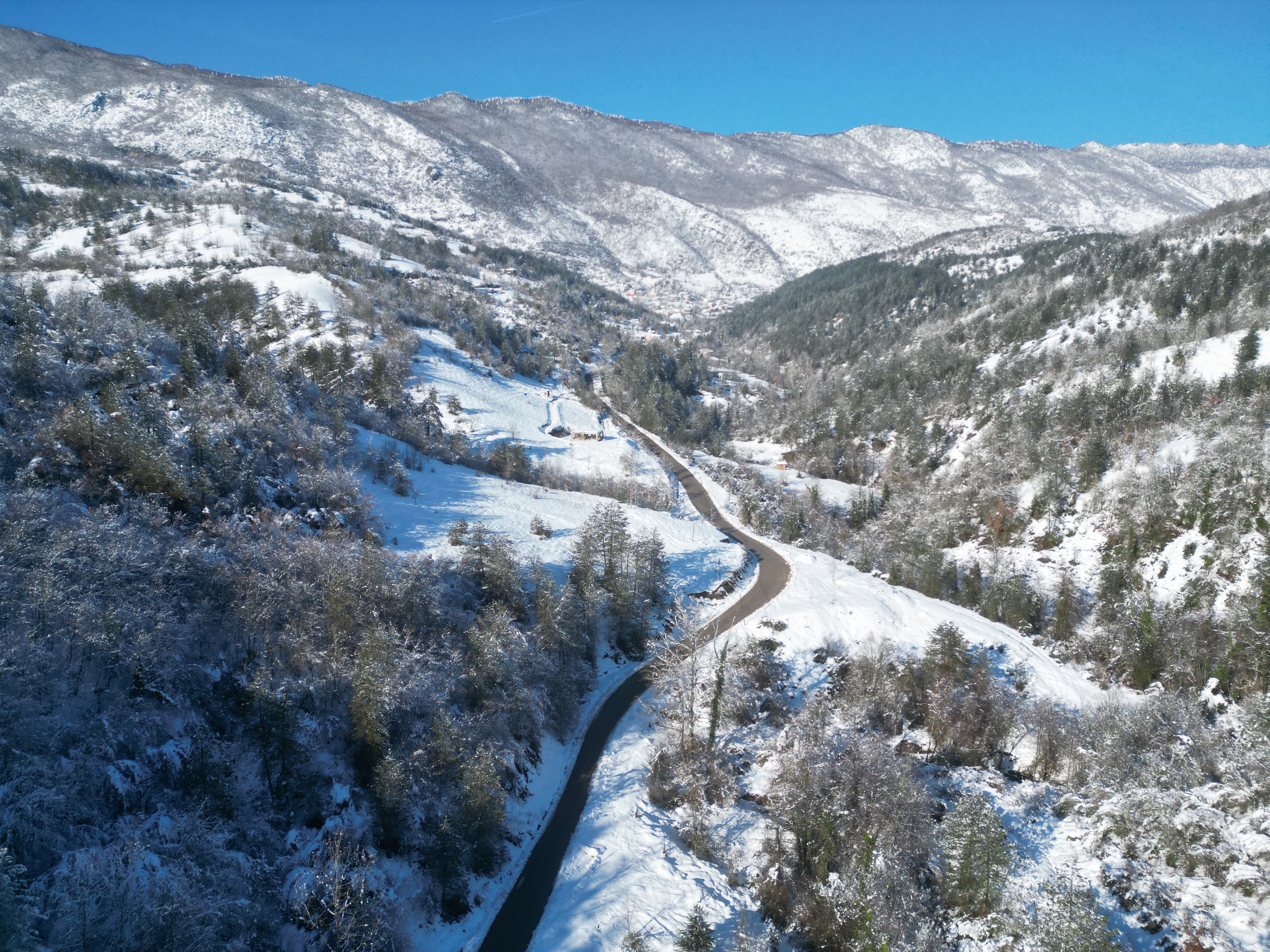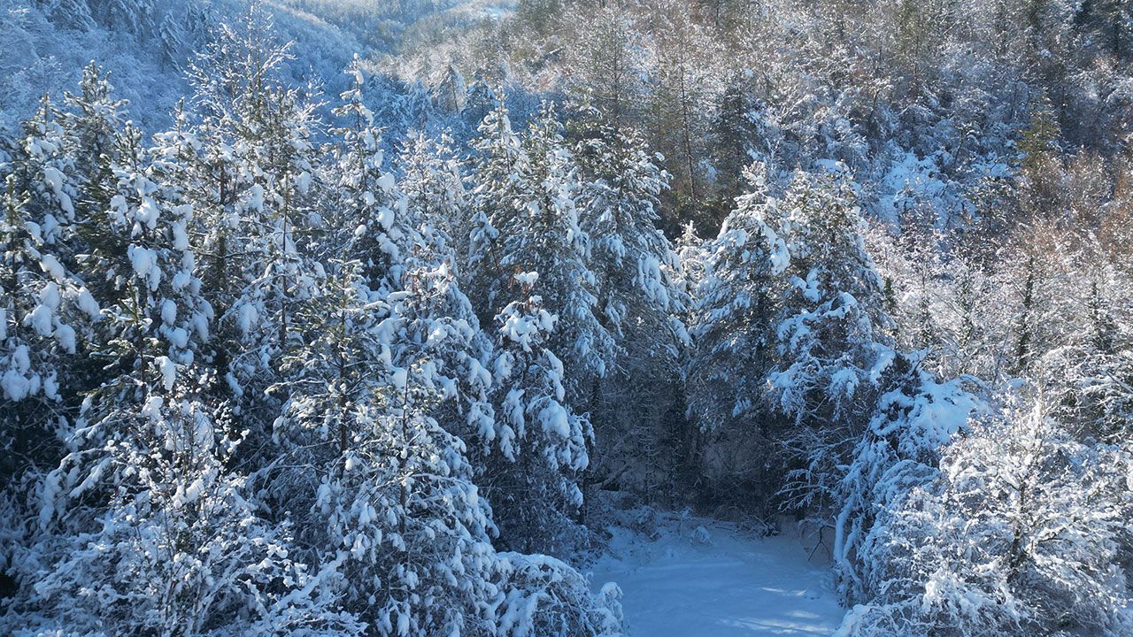 Milli parkın eteklerinde bulunan beyaz örtüyle kaplanan Drahna Vadisi’ndeki Ulukaya, Alıçlı, Çıraklar, Köklü, Çamdibi, Kozanlı, Aşağıdere, Yukarıdere köyleri ve dağlardaki kar manzarası dronla görüntülendi.