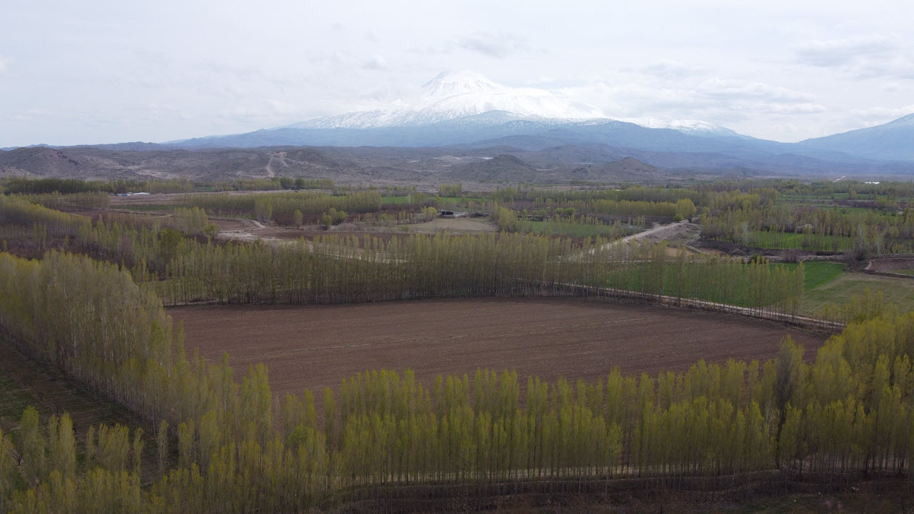 Iğdır Ovası'nda ise meyve ağaçları çiçek açarken, her yer yeşile büründü. Iğdır Ovası yeşil, beyaz çiçek ve yeşillikler ile süslenirken, dağların karı ile farklı bir görüntü ortaya çıktı. Iğdır'da iki mevsimin yaşattığı doğal tablo havadan görüntülendi.