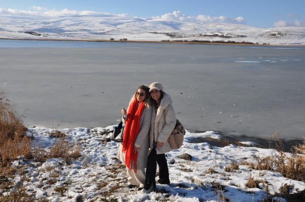 Bir bölümü buz tutan gölün ilk misafirleri de gelmeye başladı. İstanbul'dan Kars'a tatile gelen İlayda Üstünakın ve Aslı Balcı, kentin tarihi ve turistik yerlerini ziyaret ettikten sonra Çıldır Gölü'nü gezdi. Atlı kızaklarla göl üzerinde gezme planları henüz tam donma olmadığı için gerçekleşmeyen Üstünakın ve Balcı, bol bol fotoğraf çekti.