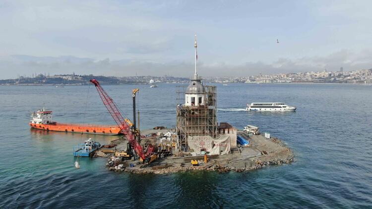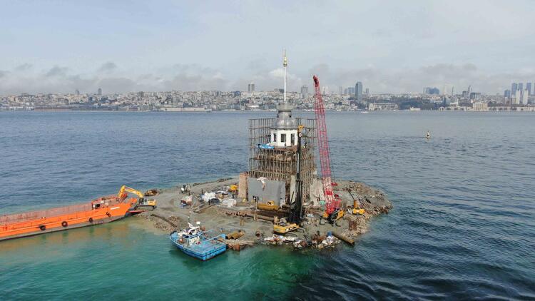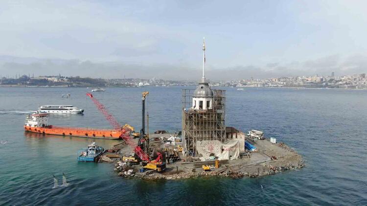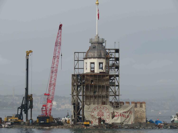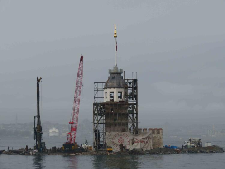 İstanbul'un 2 bin 500 yıllık tarihe sahip simgelerinden Kız Kulesi'nin restorasyonunda sona yaklaşıldı.