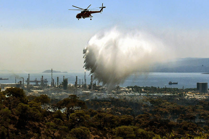Tedbir amaçlı bazı yerleşim birimlerinin boşaltıldığı yangınlar nedeniyle Atina yakınlarındaki petrol rafinerisinin korunmasına yönelik bazı otoyollar kapatıldı.