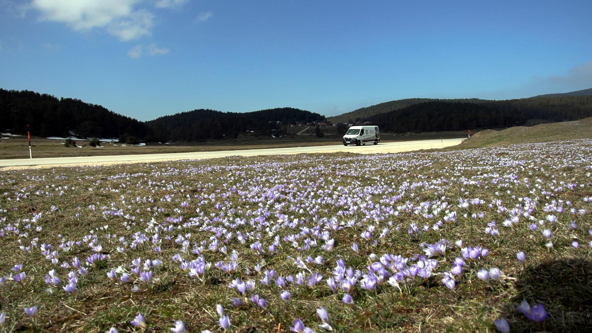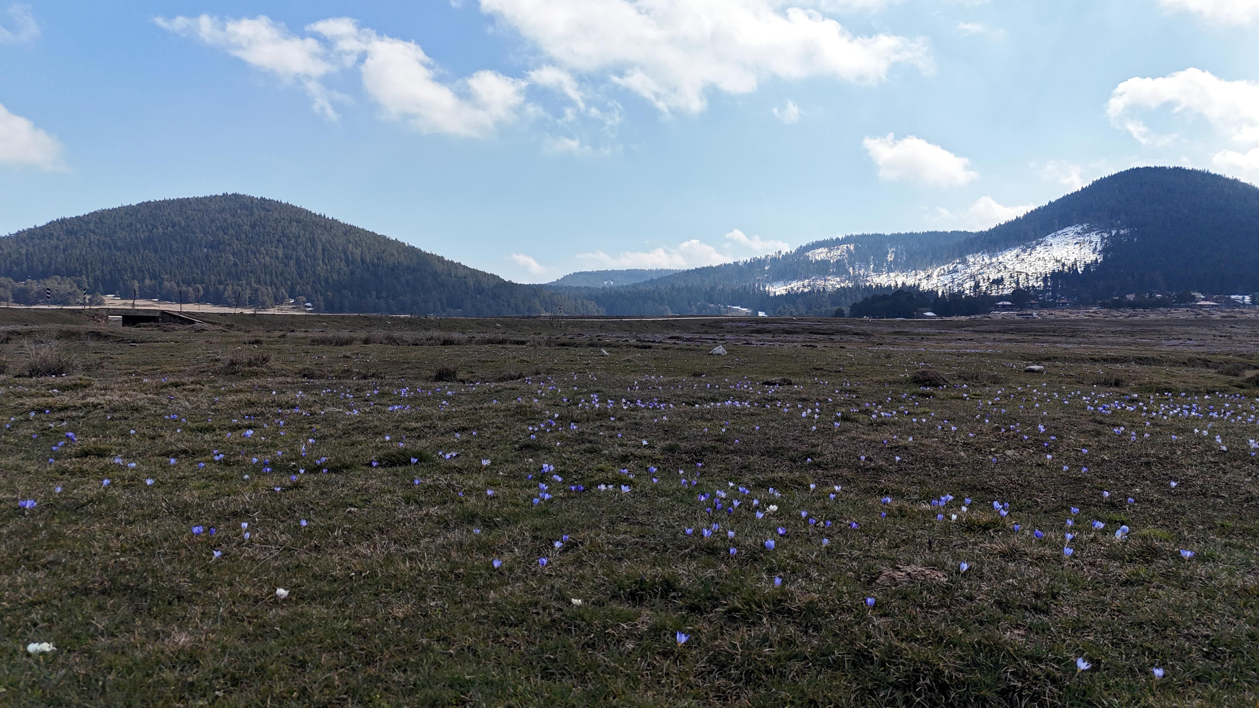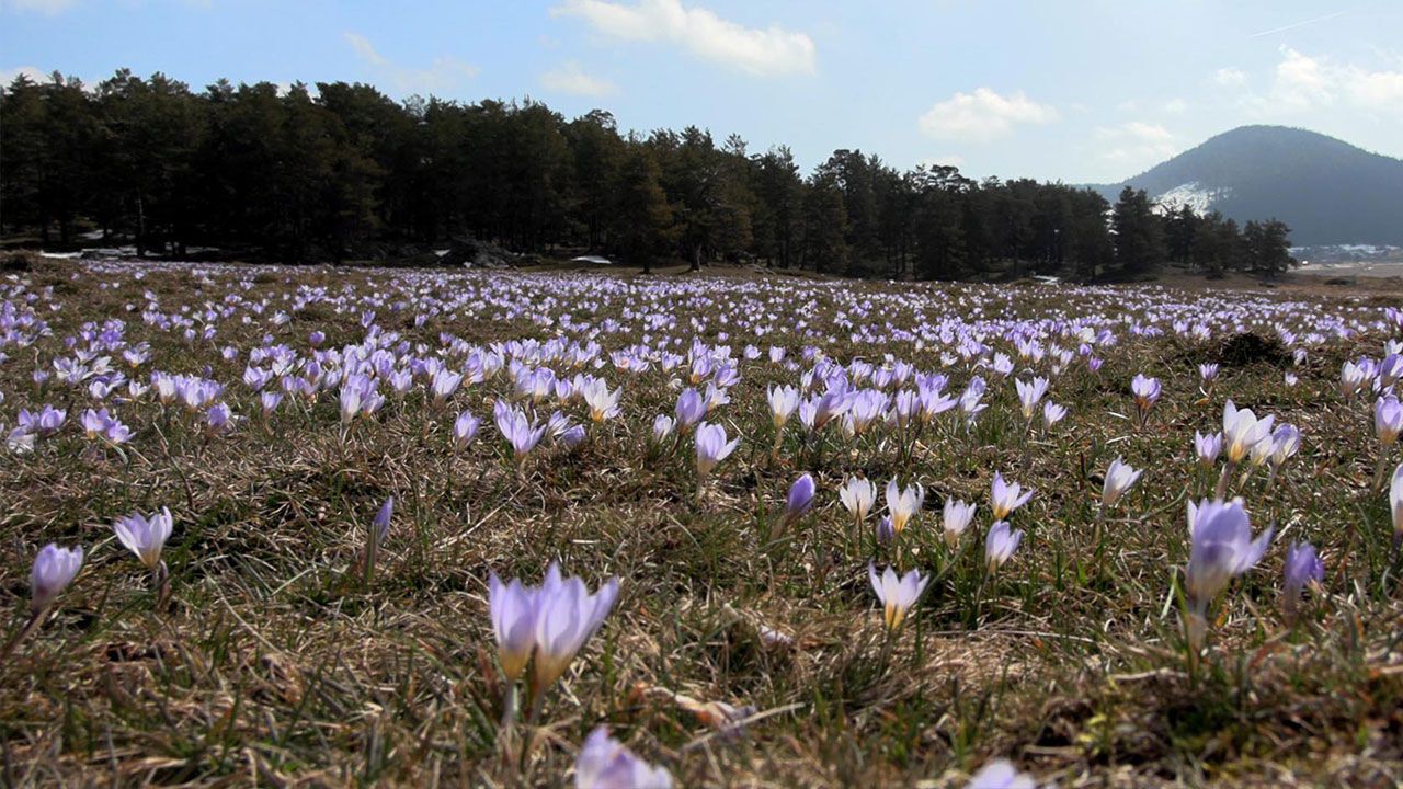 Bolu'da onlarca hektarlık mera ve arazilerin bulunduğu 1700 rakımlı Sarıalan Yaylası'nda baharın müjdecisi çiğdem çiçekleri açtı.