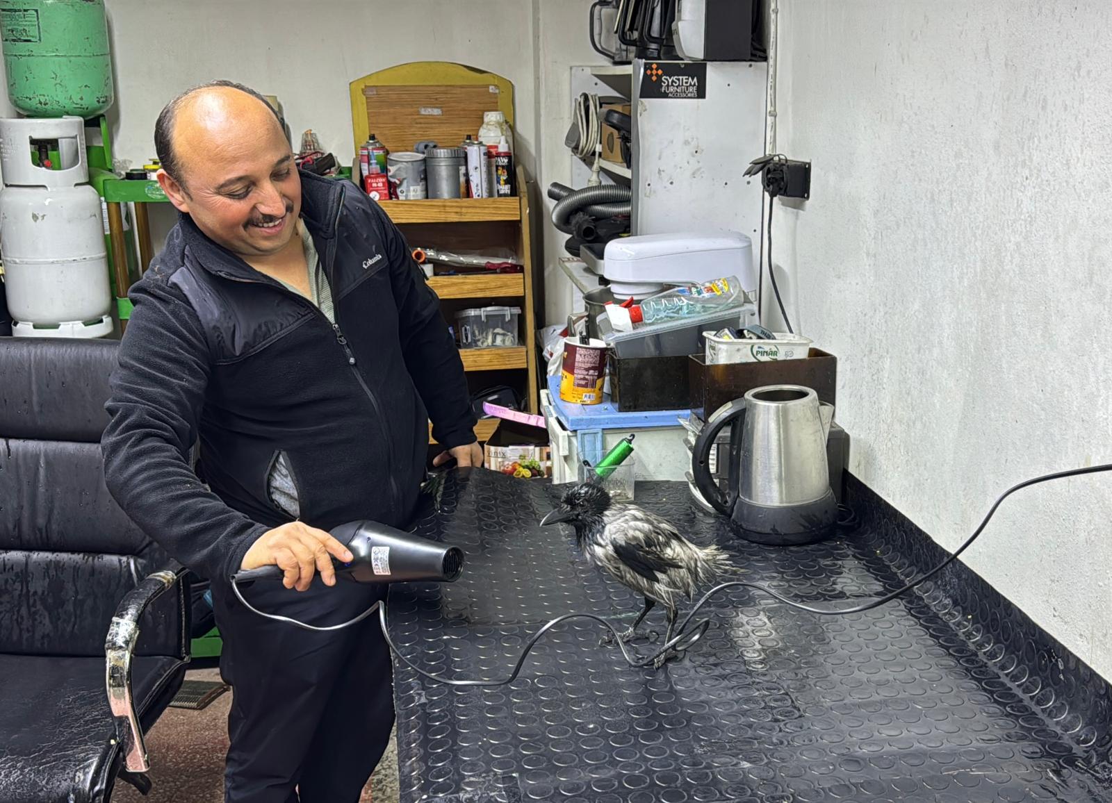 Ordu'nun Altınordu ilçesi Karşıyaka Mahallesi’ndeki dükkanında beyaz eşya tamiri yapan Serdar Hekim, yazın yaralı bir karga buldu. Hekim’in, tedavi ettirip doğaya saldığı, kedi ve martıların saldırdığı karga, her defasında geri döndü. ‘Haşmet’ ismini verdiği kargayı dükkanında bakmaya başlayan Hekim, her geçen gün dostluklarının pekiştiğini belirterek, “Haşmet’i her gün ellerimle besliyorum ve banyo yaptırıyorum. Suda oynamayı çok seviyor. Banyo yapmadığı zaman benden resmen banyo yaptırmamı istiyor. Banyodan sonra saç kurutma makinesi ile tüylerini kurutuyorum. Burada bizimle yaşamaya başladı. En çok fındık, fıstık, ceviz, haşlanmış yumurta ve kedi maması gibi yiyecekleri yemeyi seviyor. Görenlerin tepkisi güzel ama şaşıranlar da oluyor” dedi.