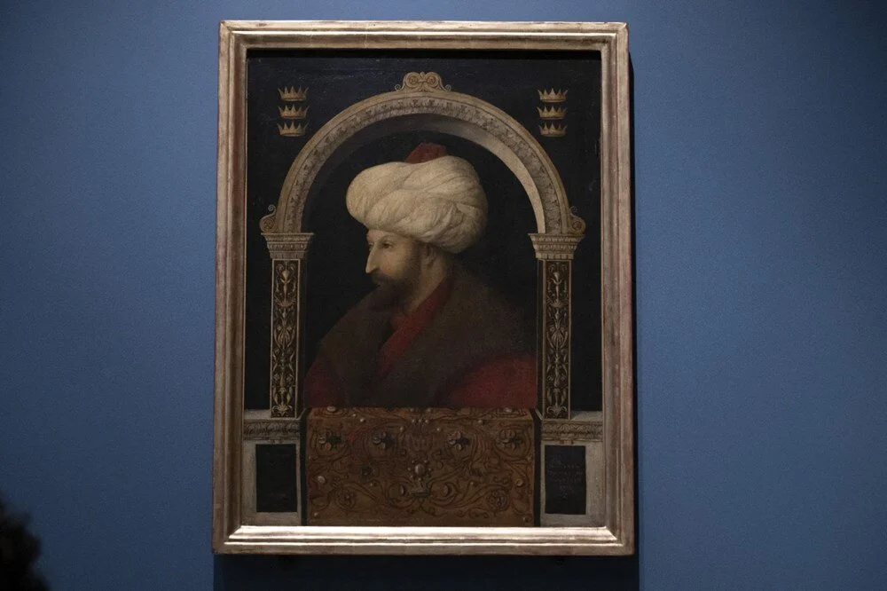Fatih Sultan Mehmet’in İtalyan ressam Gentile Bellini’ye sipariş ettiği ve Londra'nın Victoria ve Albert Müzesi'nin en önemli eserleri arasında yer alan ünlü portresinin üzerinde Latince "Dünyanın Fatihi" yazısı var.