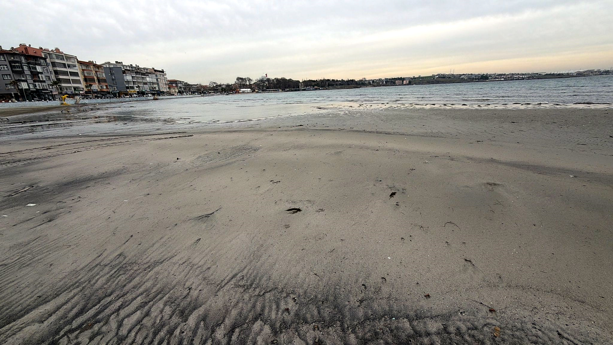 Tekirdağ'ın Marmaraereğlisi Sahili'nde Marmara Denizi, kıyıdan yaklaşık 50 metre çekildi.