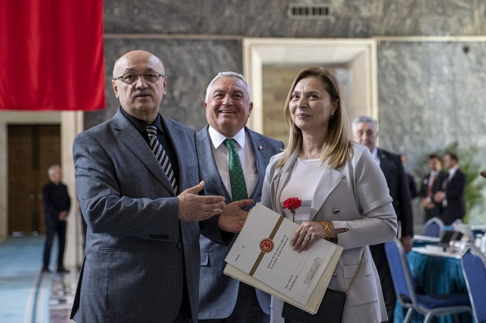 28. Dönem milletvekillerinden ilk kaydı için Ersoy'u TBMM Milletvekili Hizmetleri Başkanı Ahmet Yurtman karşıladı.