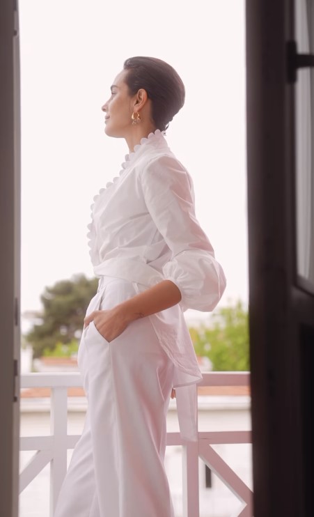 Beyazlar içinde objektif karşısına geçen Arzum Onan'ı görenler 'yıllara meydan okuyor' dedi.