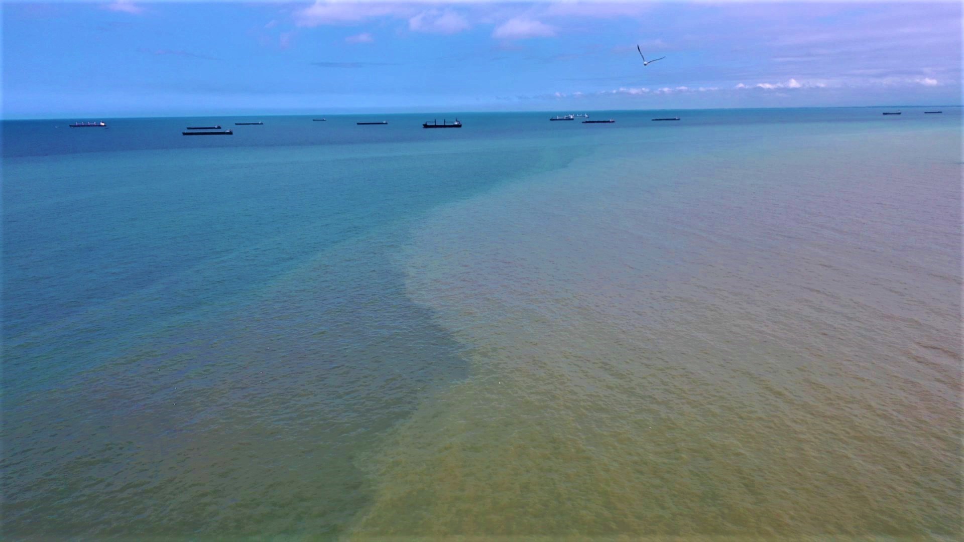 Çamur akan akarsular, Karadeniz'in mavi renginin kahverengiye dönmesine neden oldu. Ufuk çizgisinde deniz mavi rengini korurken, dron ile havadan görüntülen Karadeniz'de mavi ile kahverenginin kesiştiği noktalar renkli görüntüler oluşturdu.