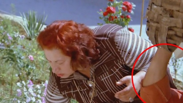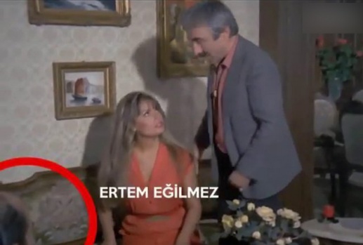 Türkan Şoray ve Bulut Aras'ın başrolünü oynadığı 1978 yapımı "Sultan" filminde Adile Naşit'in olmayan başörtüsü sahne açısı değişince birden başında oluyor.