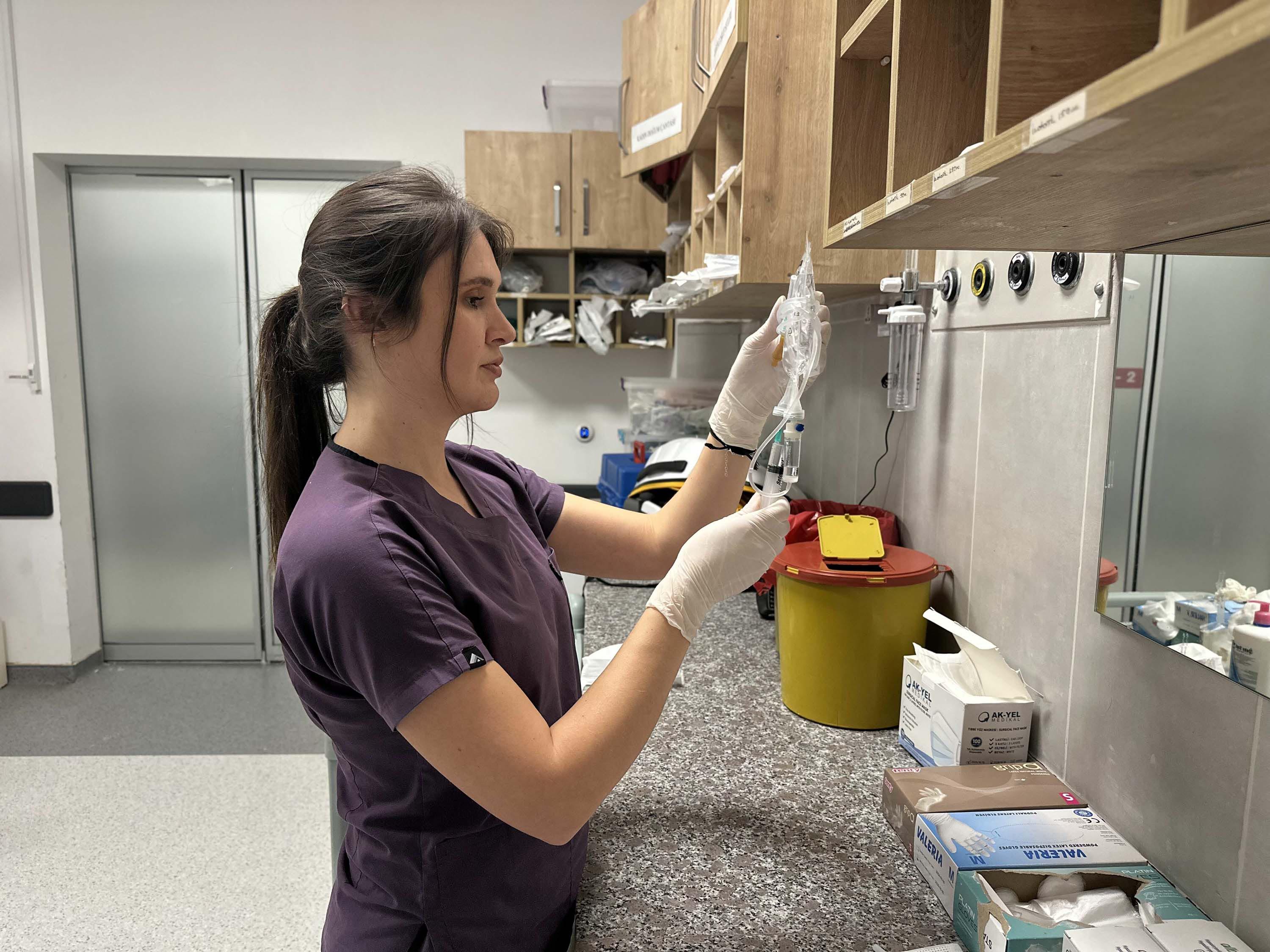 Aydın Adnan Menderes Üniversitesi Uygulama ve Araştırma Hastanesi Acil Yoğun Bakım Servisi'nde görev yapan Rümeysa Taşova, hastane koridorları ile ailesinin çiftliği arasında mekik dokuyor. Mesai saatlerinde hastalarla ilgilenen Taşova, tatil günlerinde İzmir'in Menderes ilçesindeki aile işletmesinde çalışıyor.