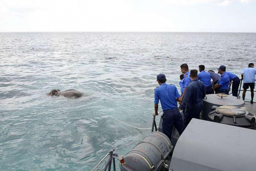 Sri Lanka Sahil Güvenliği, denizin 15 km açığında bir filin sürüklendiğini fark etti.