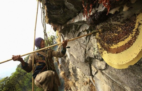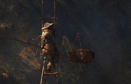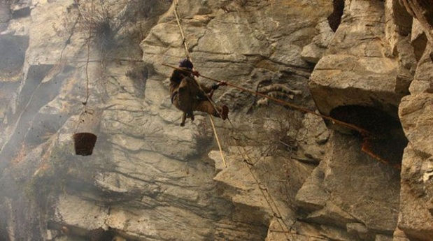 Bu kıymetli balı alabilmek için canını ortaya koyan Nepal köylüleri, dağcıların bile zorlanacağı uçurumlara çıkıp balı alıyor.