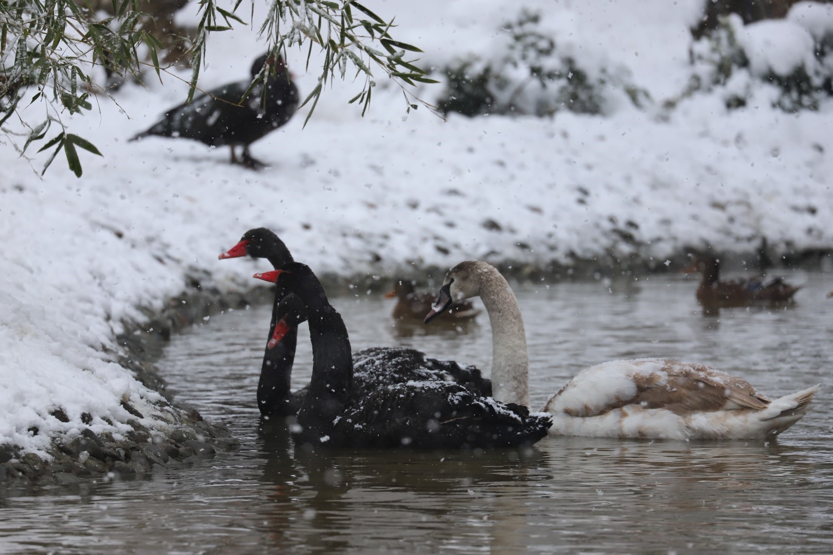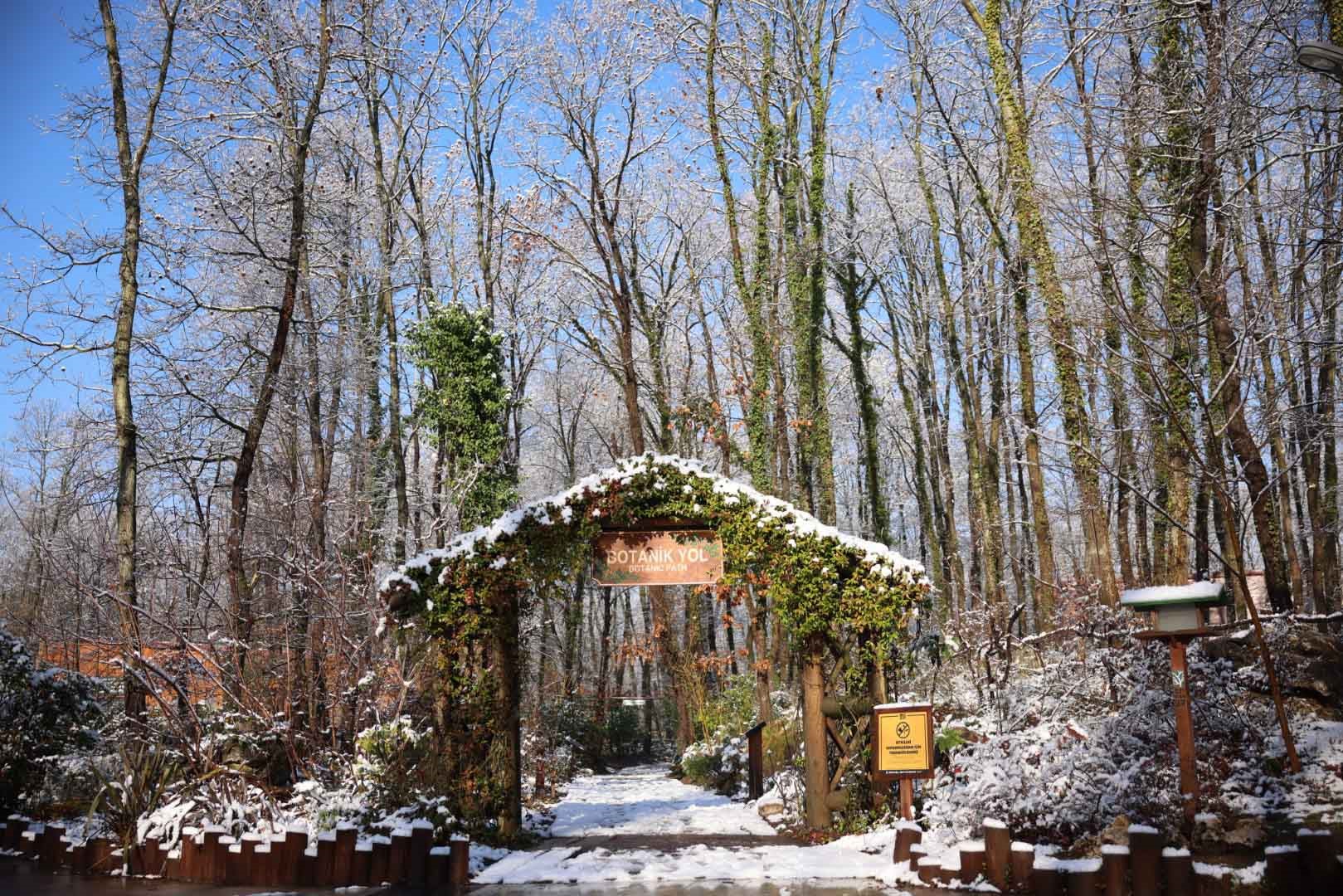 Avrupa'nın en büyük doğal yaşam parkı olma özelliğini taşıyan merkez, etkili olan yağışla beyaza büründü.