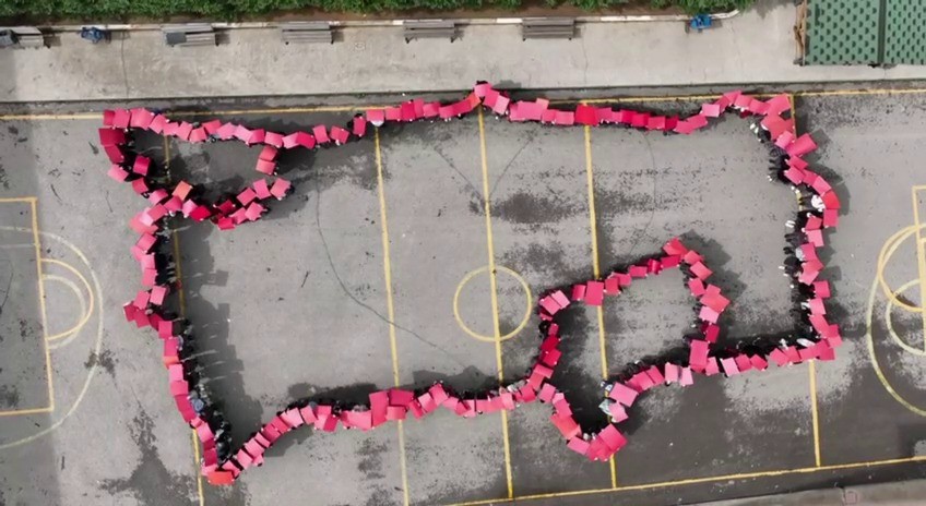 Sultanbeyli Ali Kuşçu İmam Hatip Ortaokulu bahçesinde gerçekleştirilen koreografi çalışmasında öğrenciler, oluşturdukları Türkiye haritası üzerinde deprem bölgesine siyah renklerle dikkat çekti. Öğrenciler, daha sonra Türkiye haritasından kalp şekli oluşturdu. Bir hafta süren koreografi çalışmasına 213 öğrenci katıldı.