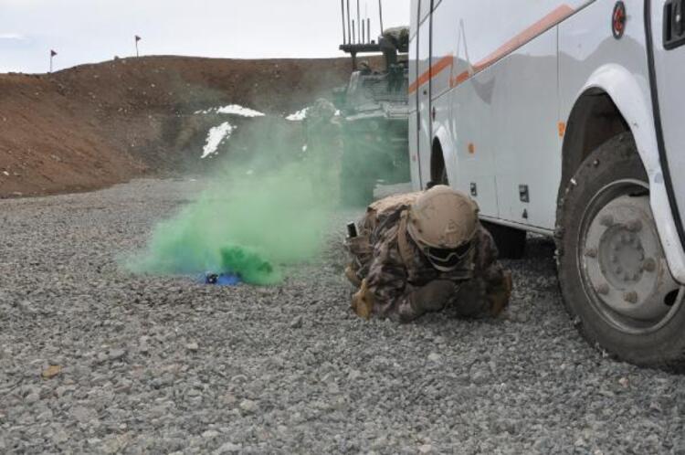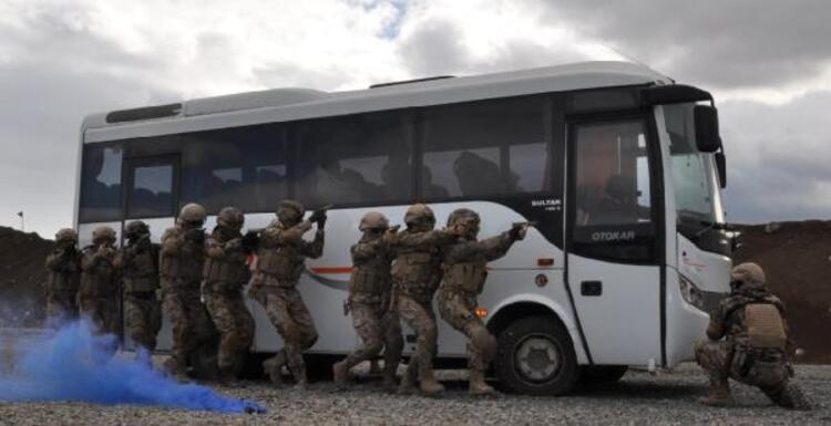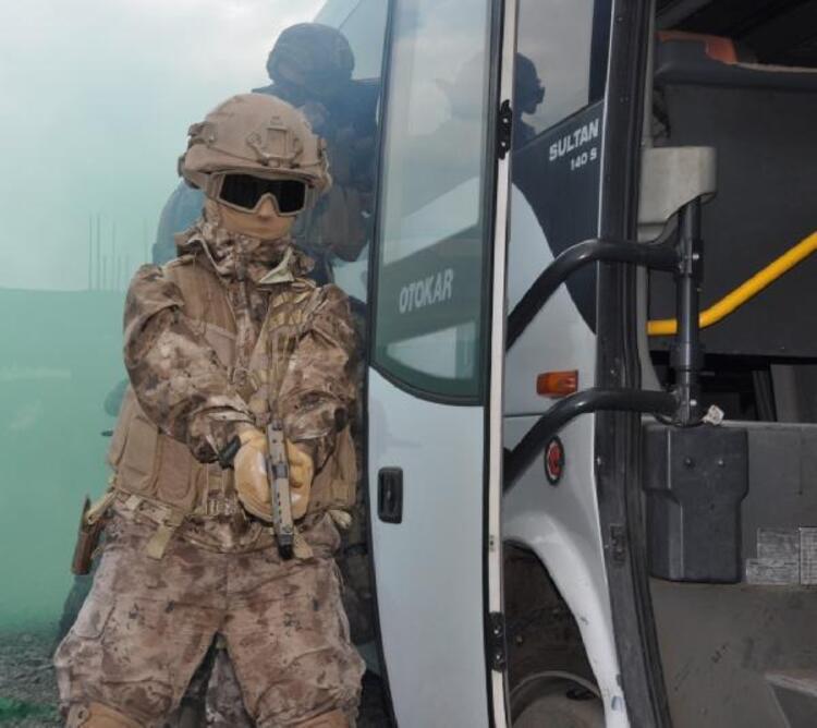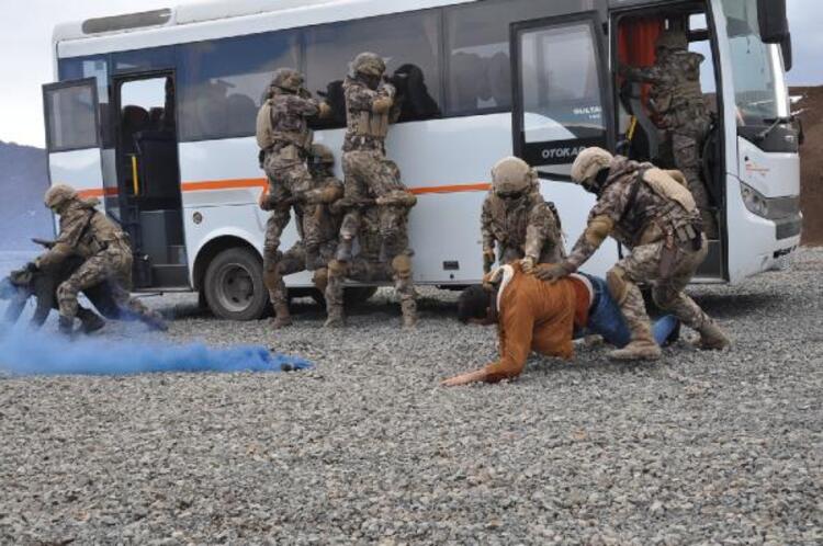Senaryo gereği bir midibüste teröristlerin bulunduğu bilgisini alarak yapılan operasyon gösterisi nefes kesti.