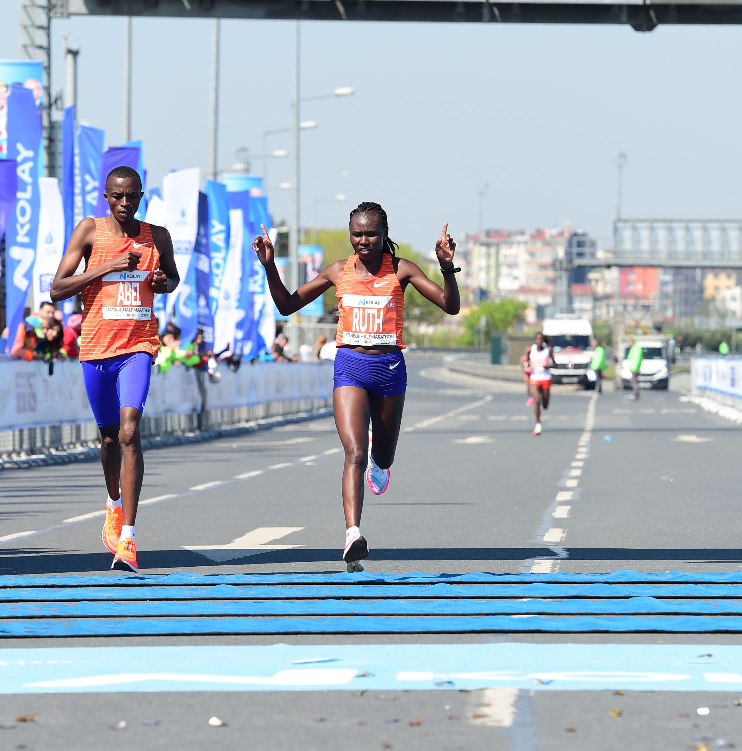 Kenyalı atlet Ebenyo bitiş çizgisini göğüsledi