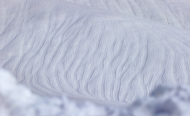 Bölgede en fazla kar yağışı alan yerleşim yerlerinden biri olan Yeni Mahalle yakınındaki arazi ve dağların karla kaplı yüzeyinde şiddetli rüzgarın aşındırmasıyla dalga şeklinde desenler oluştu.