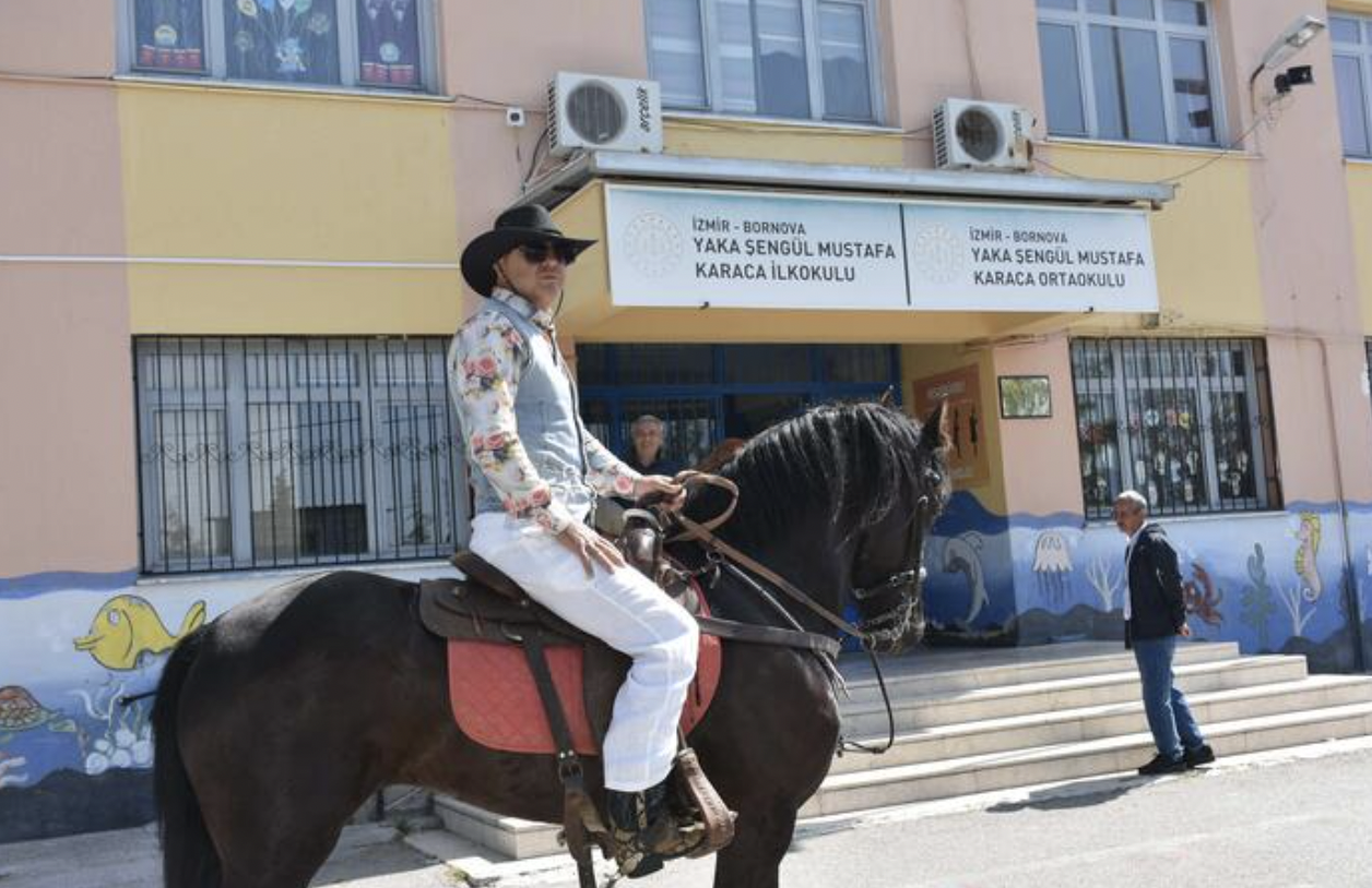 İzmir’de at eğitmenliği yapan 47 yaşındaki Faruk Ceren, oy kullanmaya atıyla geldi. Kovboy kıyafeti giyen Ceren, “Demokrasinin gereğini yerine getirip, oy kullanmak için bugün sandığa atımla geldim. Gergin bir dönemden geçiyoruz. Bu gerginliği üzerimden atmak için araç yerine atımı tercih ettim” diye konuştu.
