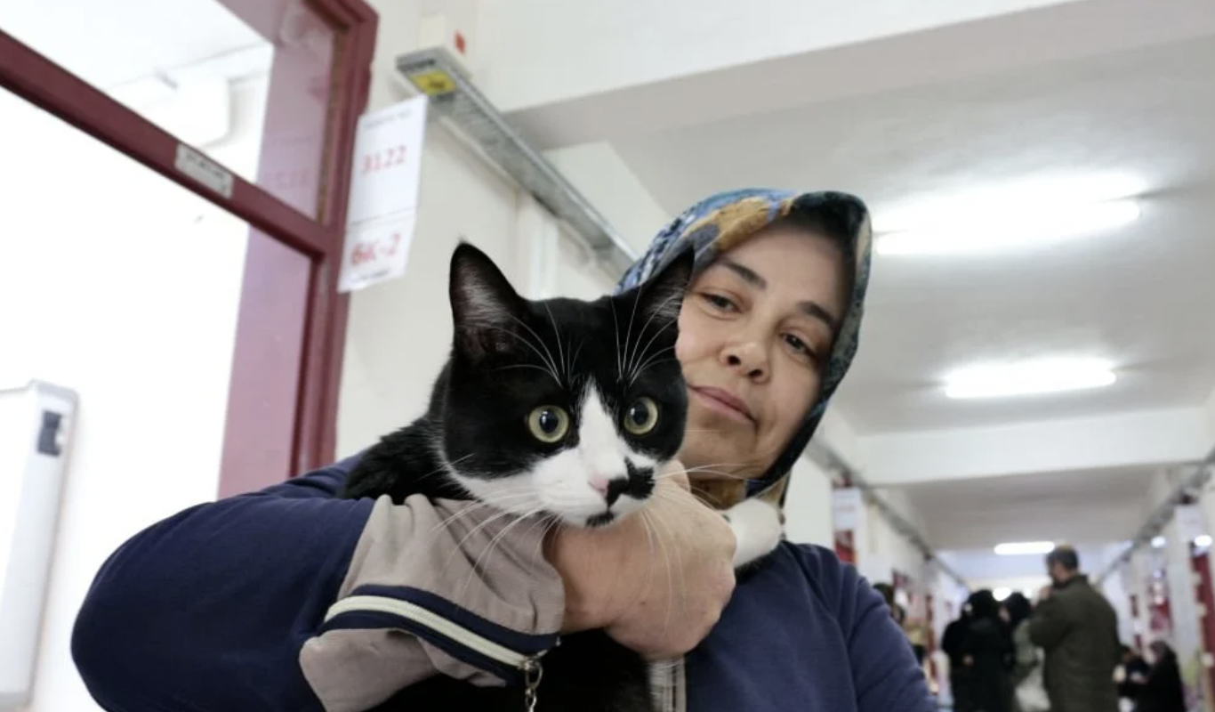Konya’da bir seçmen oy kullanmaya kedisiyle geldi.