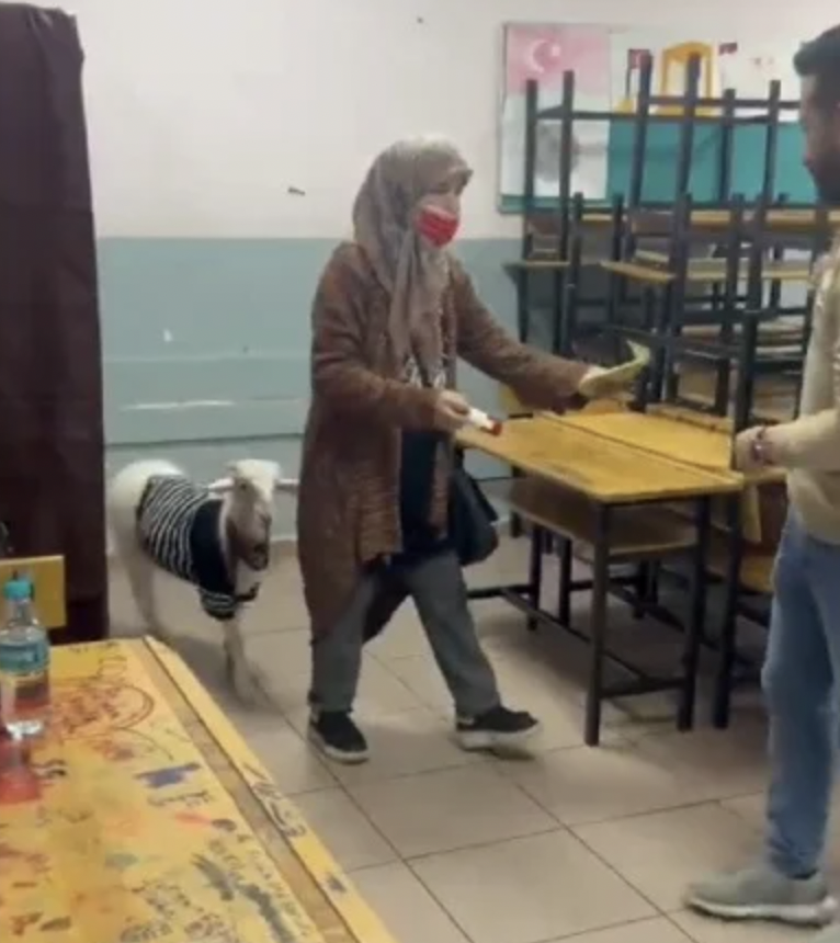 İstanbul’da bir yurttaş sandık başına kuzusuyla geldi.