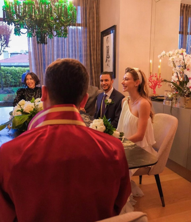 Çift, sade bir nikah töreni ile mutluluklarını paylaşırken yakın dostları da onlara eşlik etti.