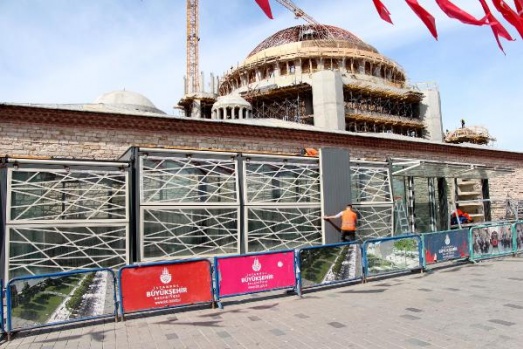 İstanbul Büyükşehir Belediyesi (İBB)'nin Taksim Meydanı düzenlemesi kapsamında, 2017'nin Mayıs ayında tarihi Maksem'in önüne yerleştirilen camekandan olaşan 9 çiçek satış kabininin yeni yerlerine taşınması için söküm işlemlerine başlandı.