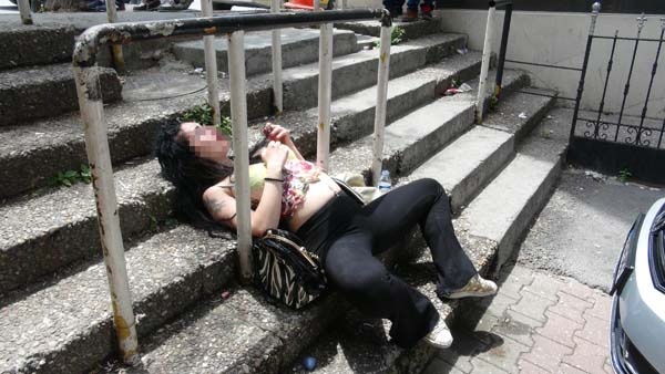 Burada aynı durumda çok kişinin olduğunu belirten mahalle esnafı, "35 yaşlarında alnında 'enayi' yazan dövmeli bir adam kıza uyuşturucu madde içirmiş. Biz kızı baygın halde görünce adamı yakaladık. Ama polis ekipleri gelmeyince adam kaçtı. Biz olay yerine ambulans çağırdık. Ambulans geldi kıza şeker verdi gitti" diye konuştu.