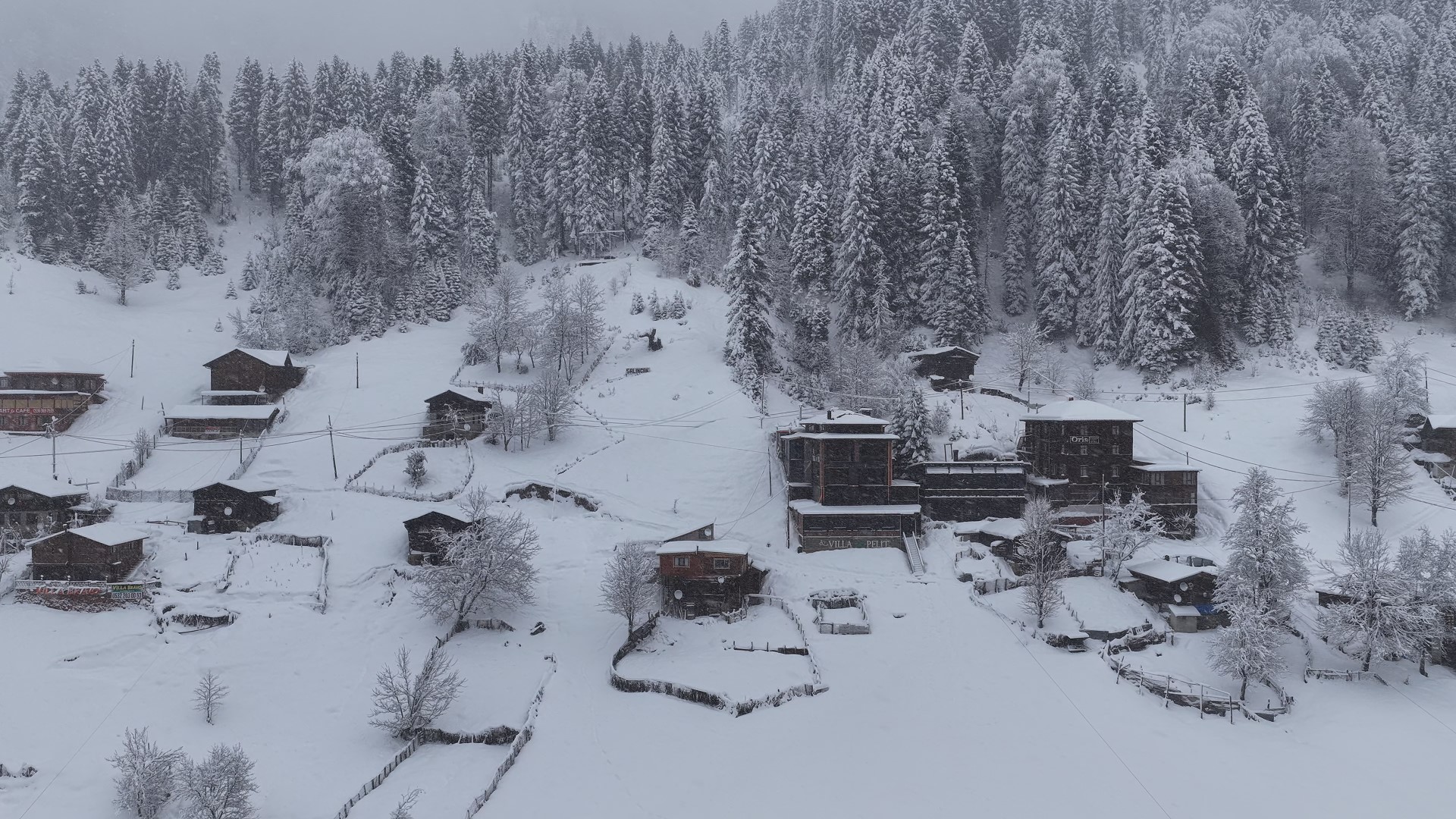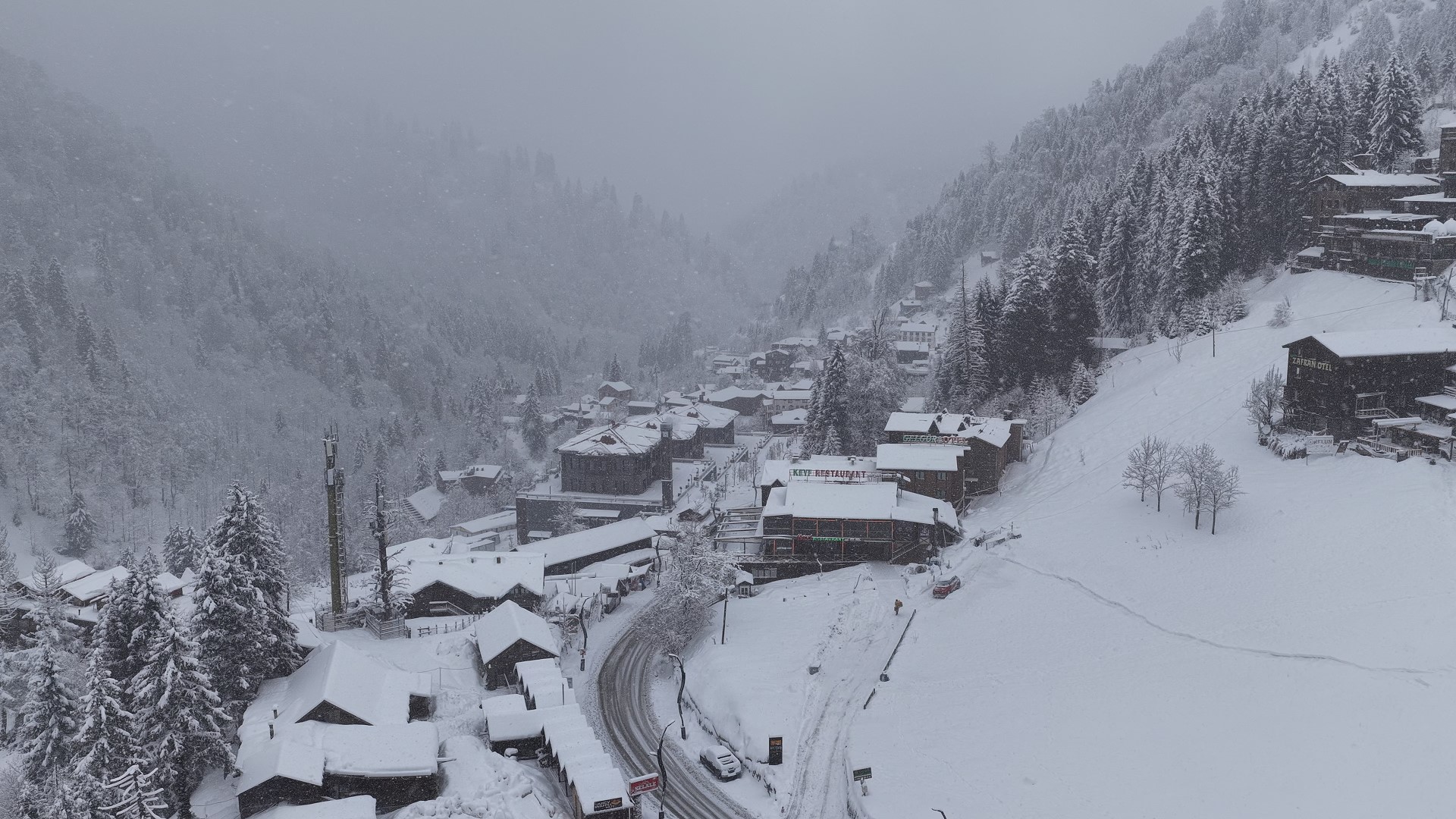 Rize'nin Çamlıhemşin ilçesinde bulunan dünyaca ünlü turizm merkezi Ayder Yaylası, etkili olan kar yağışının ardından beyaza büründü. Beyazlar içerisindeki turizm cenneti havadan görüntülendi.