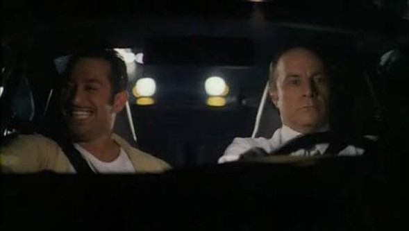 Havaalanına giderken Zeki Alasya ile Metin Akpınar konuşuyor. Zeki Alasya, arabanın önünde oturuyor ve Florya sahil yolunda. Metin Akpınar, arka koltukta ve başka bir yerde.