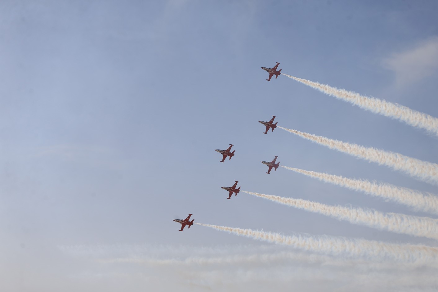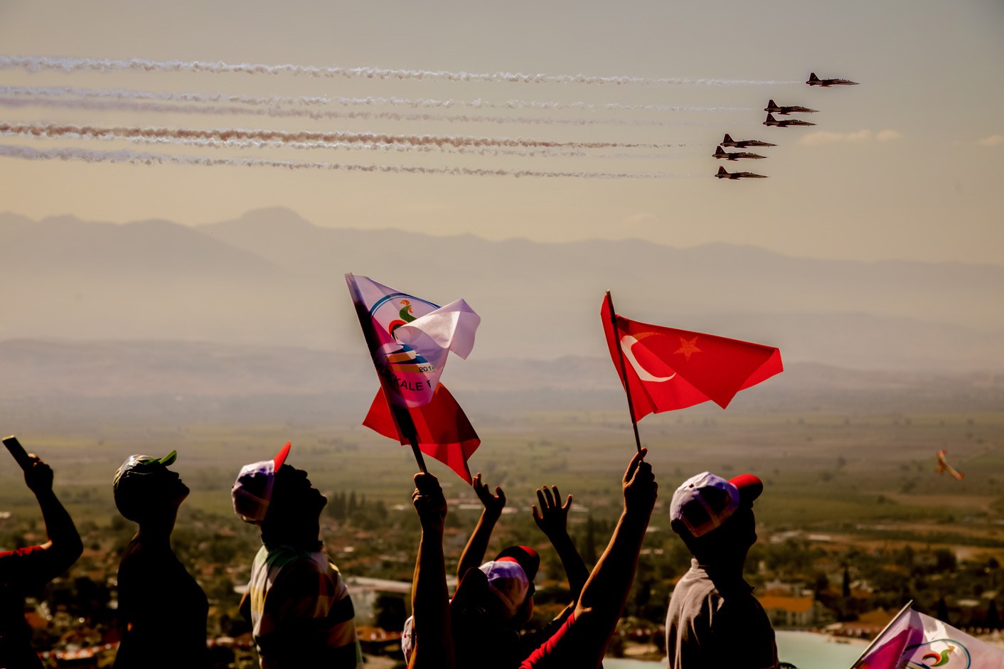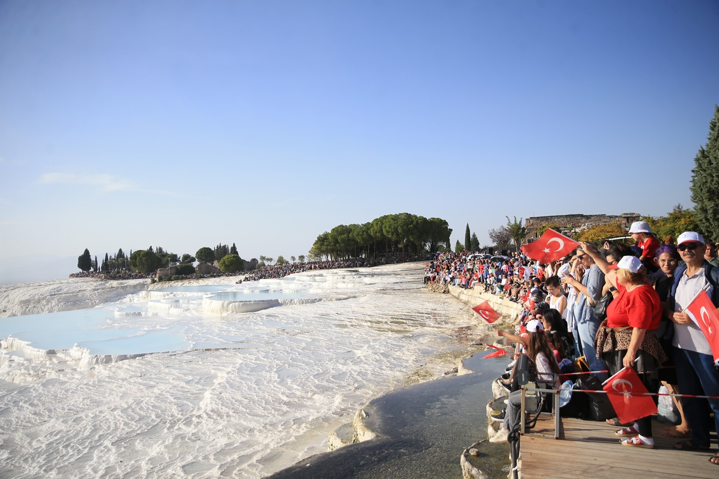 Pamukkale Belediyesi’nin Cumhuriyetimizin 100.yılı etkinlikleri kapsamında, Pamukkale’ye gelen Türk Yıldızları, Pamukkale semalarında yüzbinlerce insanın milli duygularını kabarttı. Pamukkale’nin eşsiz manzarasıyla gökyüzüne ay-yıldız çizerek büyük alkış toplayan Türk Yıldızları, Türk Milleti’nin Cumhuriyete ilelebet sahip çıkacağının mesajını verdi. Pazar gününü bu tarihi etkinlikle geçirmek isteyen yüzbinlerce Denizlili Pamukkale’ye akın etti. Trafiğin kilitlendiği Pamukkale yolunda, araçlarını yol kenarlarına park eden vatandaşlar, gösterileri oldukları yerde izledi. Pamukkale travertenlerine girişin ücretsiz olduğu bu özel günde katılımcılar gün boyu süren balon, gyrocopter, microlight, yamaç paraşütü ve Türk Yıldızları’nı izleme imkânı buldu. Türk Yıldızları gösterileri, Denizli’nin birçok açısından da görünerek, sosyal medyada büyük yankı uyandırdı.
