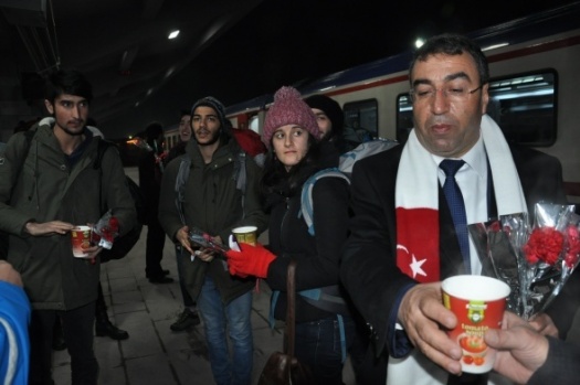 Doğu Ekspresi ile kente gelen yolculara karanfil dağıtılarak, sıcak çorba ikram edildi.