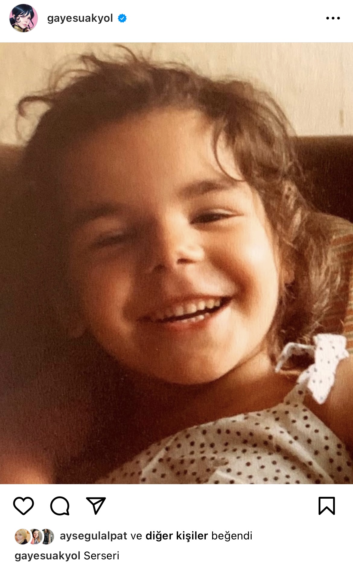 Ünlü şarkıcı Gaye Su Akyol, kendisinin çocukluğa ait bir kareye 'Serseri' notu düştü.