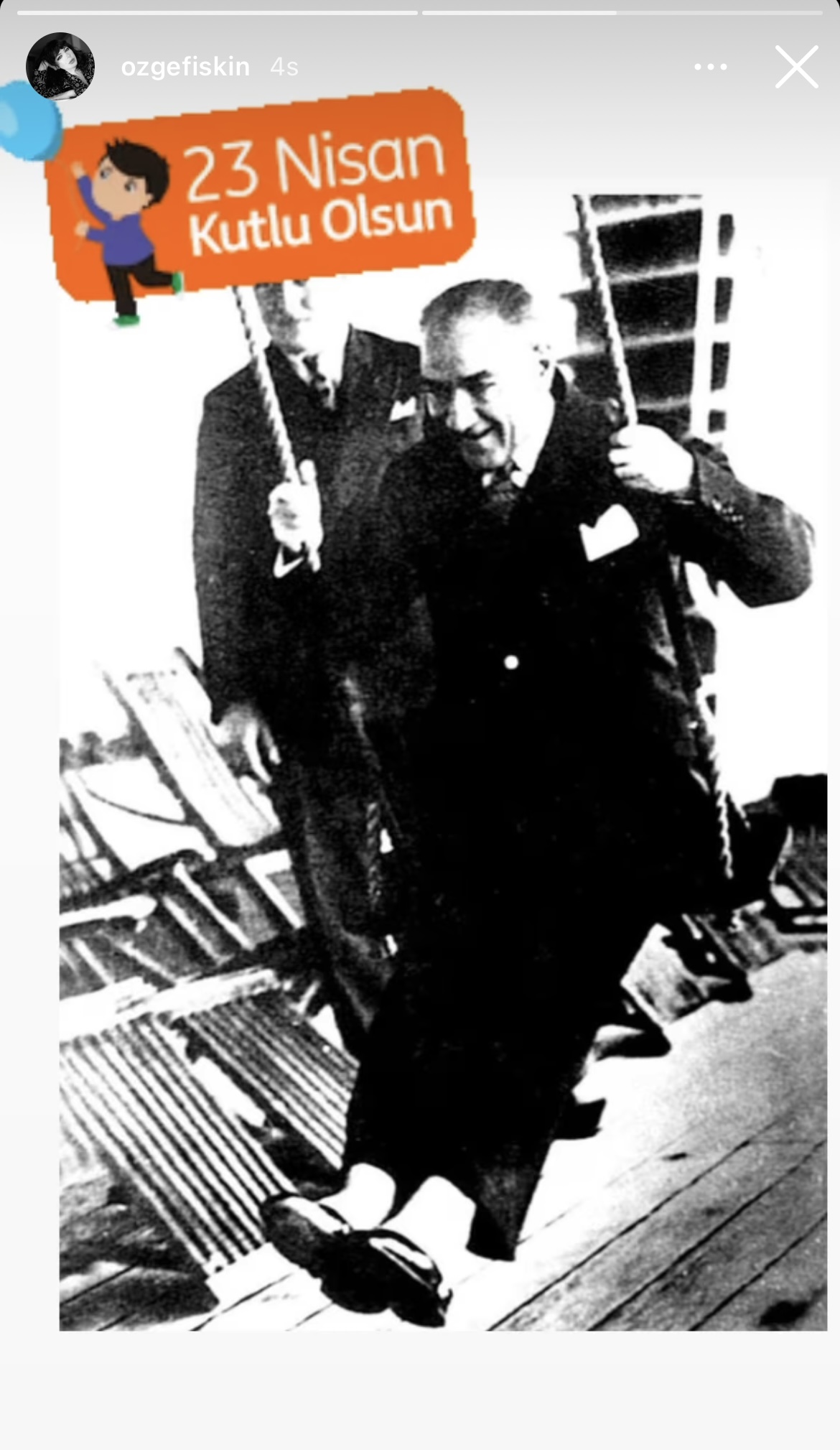 Özge Fışkın, Mustafa Kemal Atatürk'ün salıncaktaki fotoğrafı ile 23 Nisan'ı kutladı.