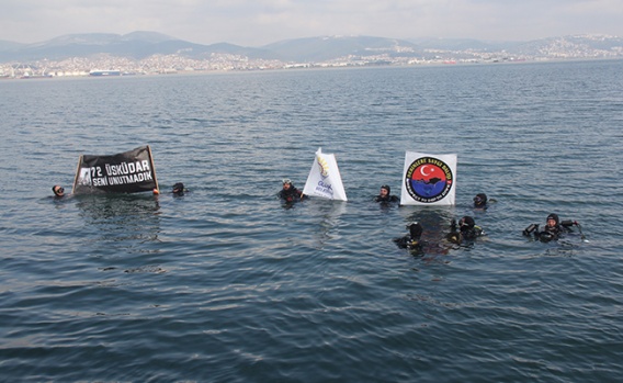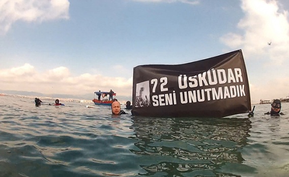 Derinlere Saygı Dalışı Topluluğu’nun 8 üyesi, saygı dalışı öncesinde “72 Üsküdar seni unutmadık” yazılı pankart açtılar. Daha sonra denize dalan dalgıçlar, denizin dibine faciada hayıtını kaybeden 300’den fazla kişi için çelenk bıraktılar.