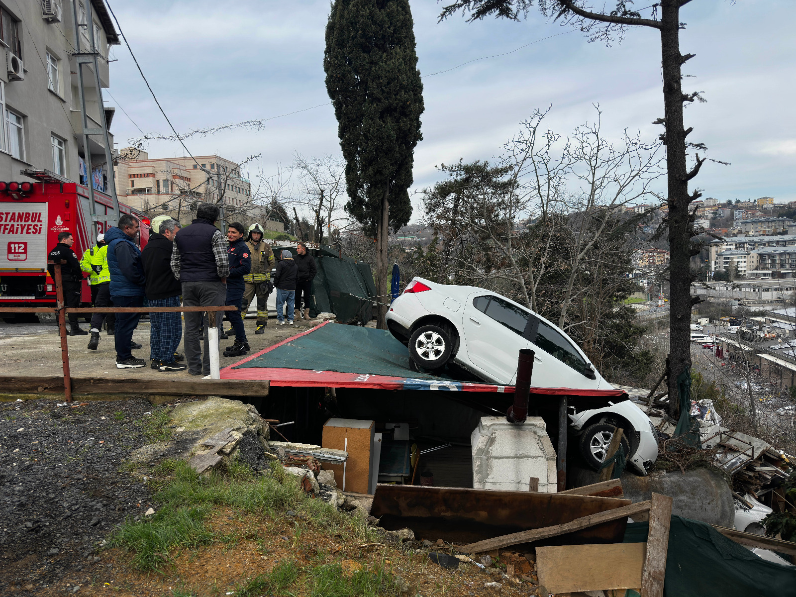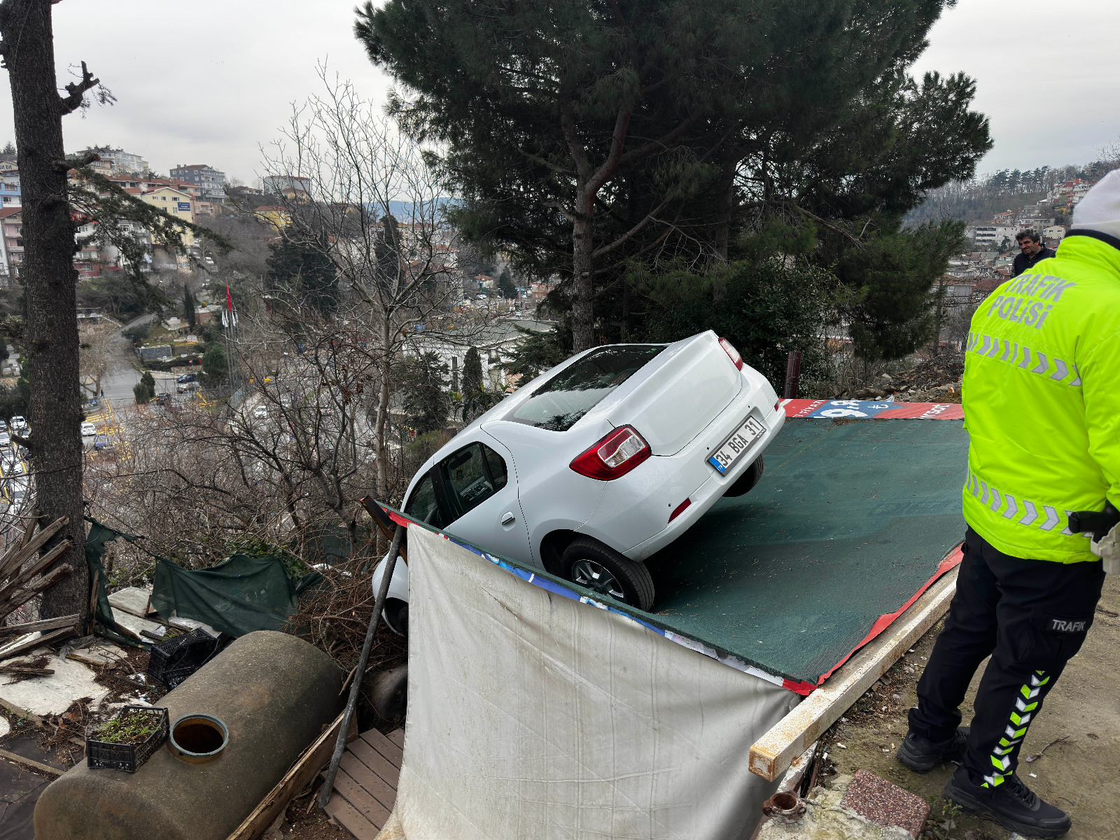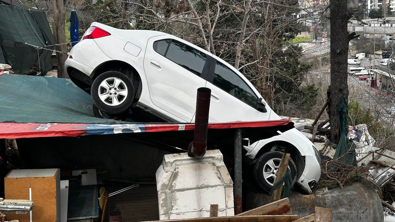 Kontrolden çıkan otomobil, sokak üzerinde bulunan bir dinlenme kamelyasının üzerine çıktı. Kamelyanın üzerine asılı kalan aracı gören vatandaşlar durumu hemen itfaiye ve polis ekiplerine bildirdi. İhbar üzerine olay yerine gelen ekipler, çevrede güvenlik önlemi aldı.