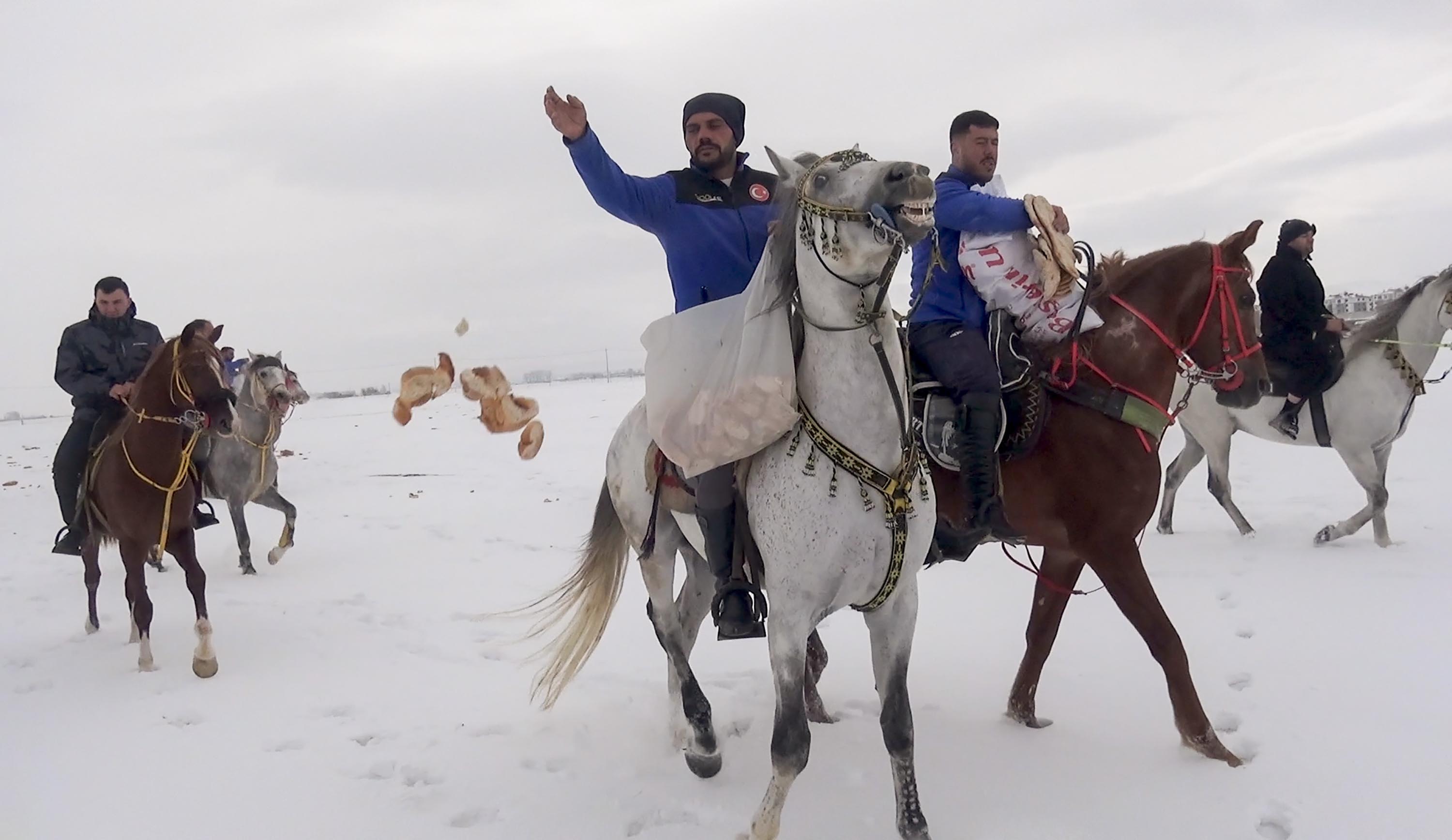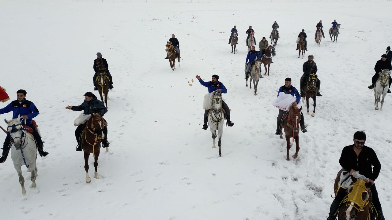 Başkan Akpunar’ın da atıyla katıldığı grup, sıfırın altında 15 derecede karla kaplı arazide uygun buldukları noktalara yiyecek bıraktı.
