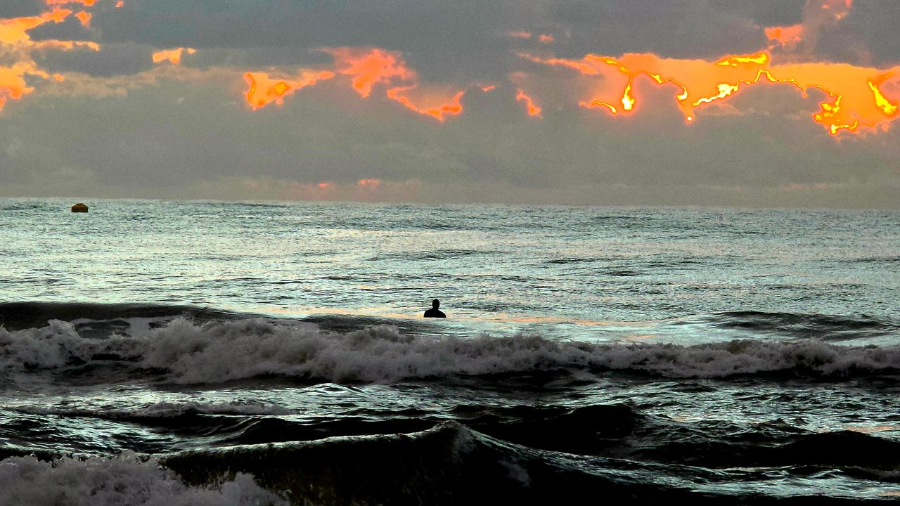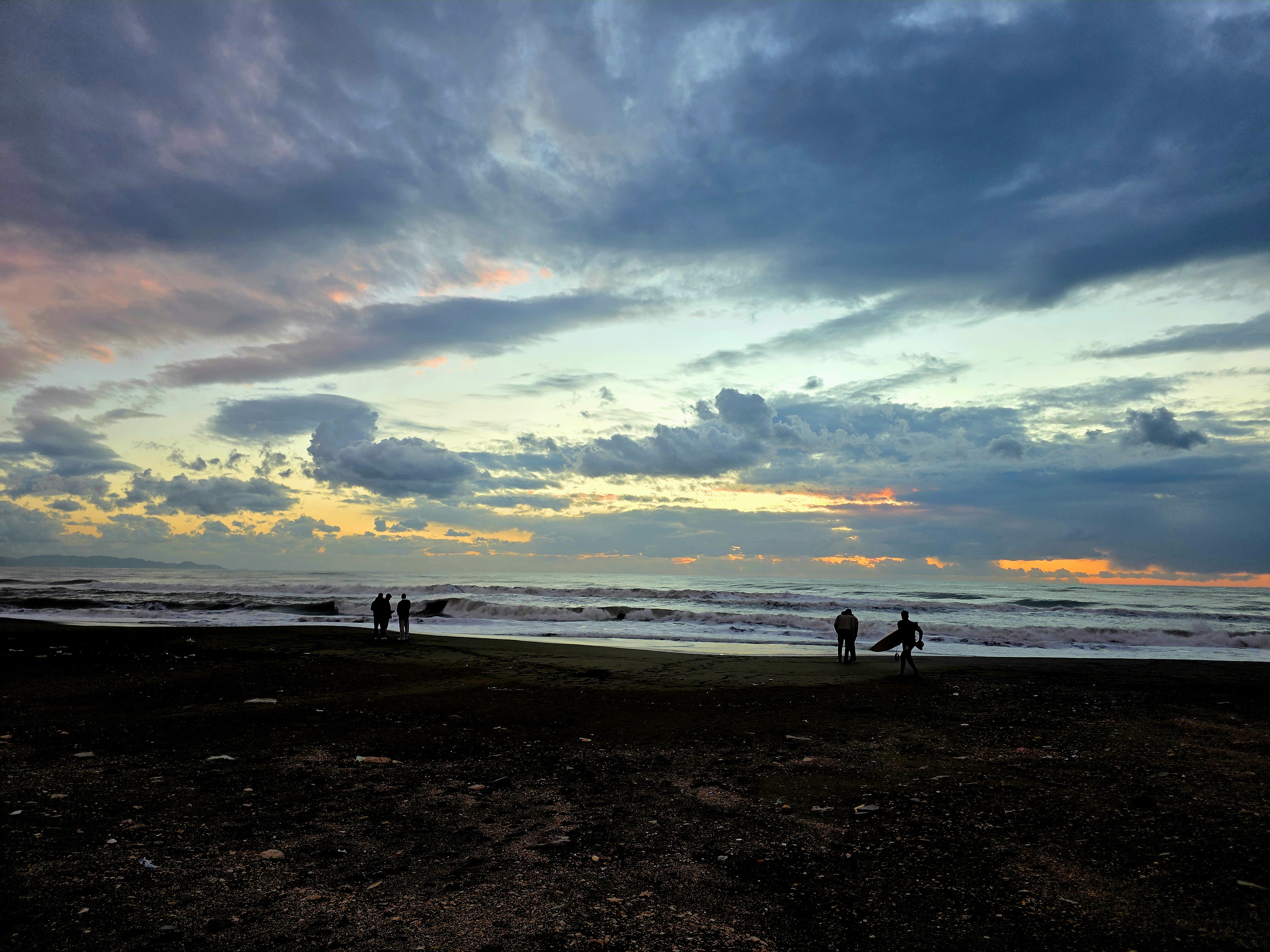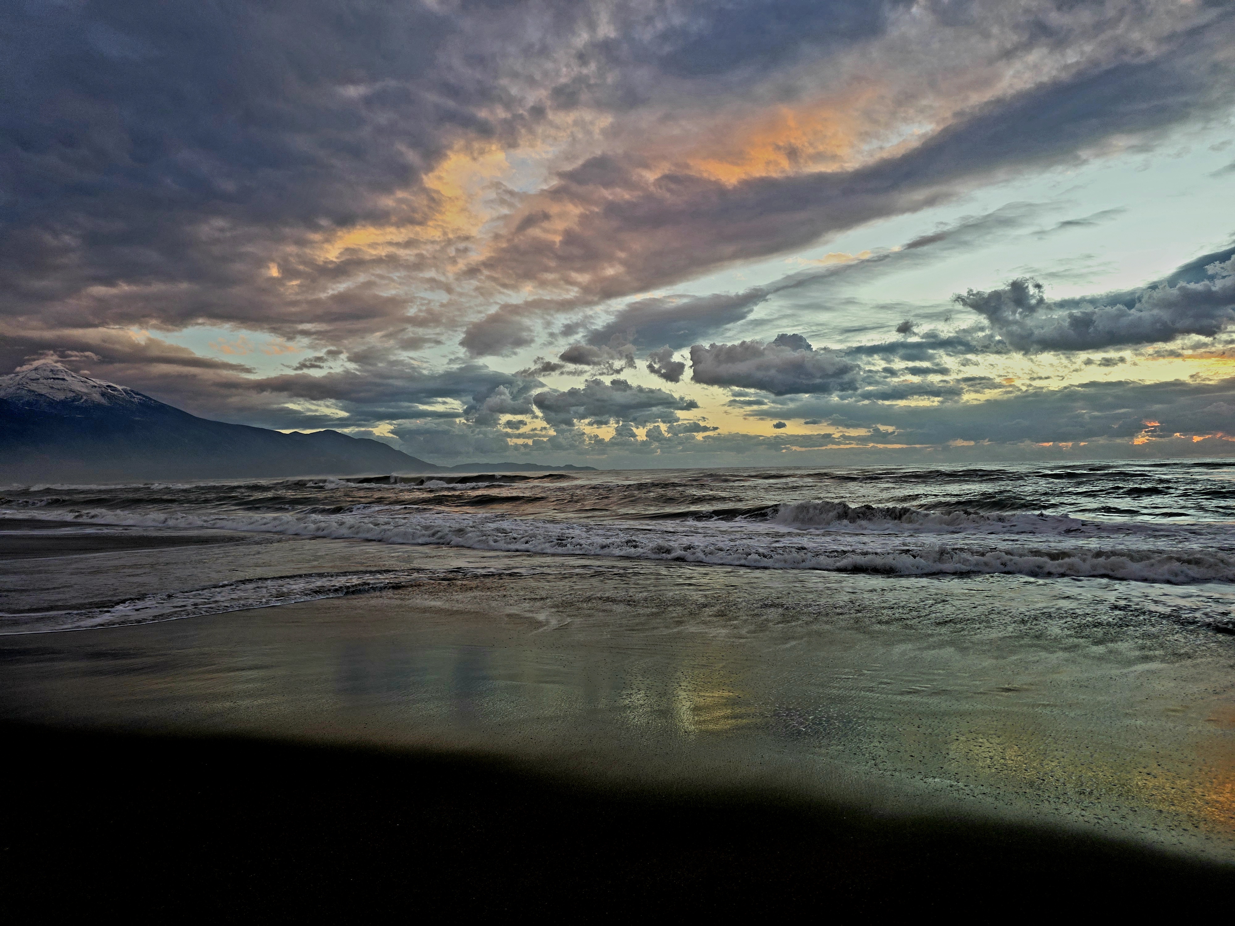 Denizin hafif dalgalı olduğu Samandağ sahilinde, yağmurun ardından oluşan manzara bölgeye ayrı bir renk kattı.