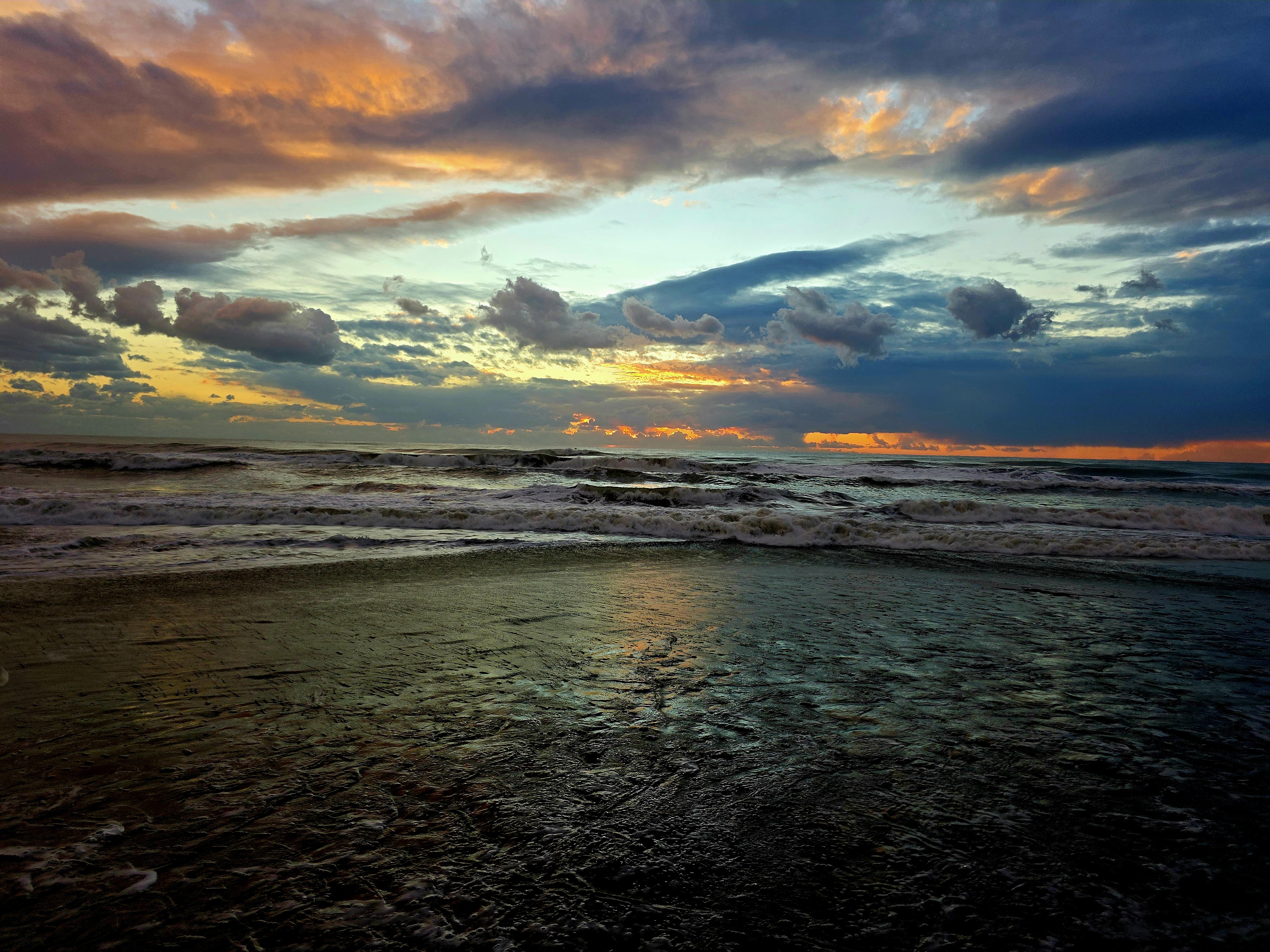 Yağmur sonrası sahilde oluşan yansımalar ve bulutların denizle bütünleştiği manzara, vatandaşların ilgisini çekti.