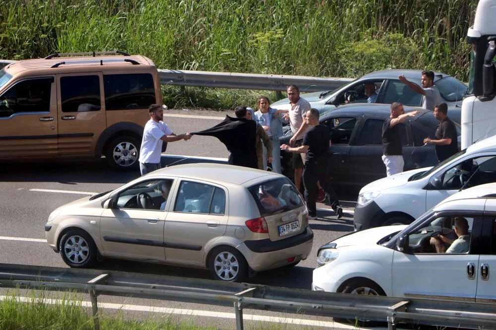 Diğer sürücüler ve polisin müdahalesiyle kavga sonlandırıldı, taraflar yollarına devam etti.