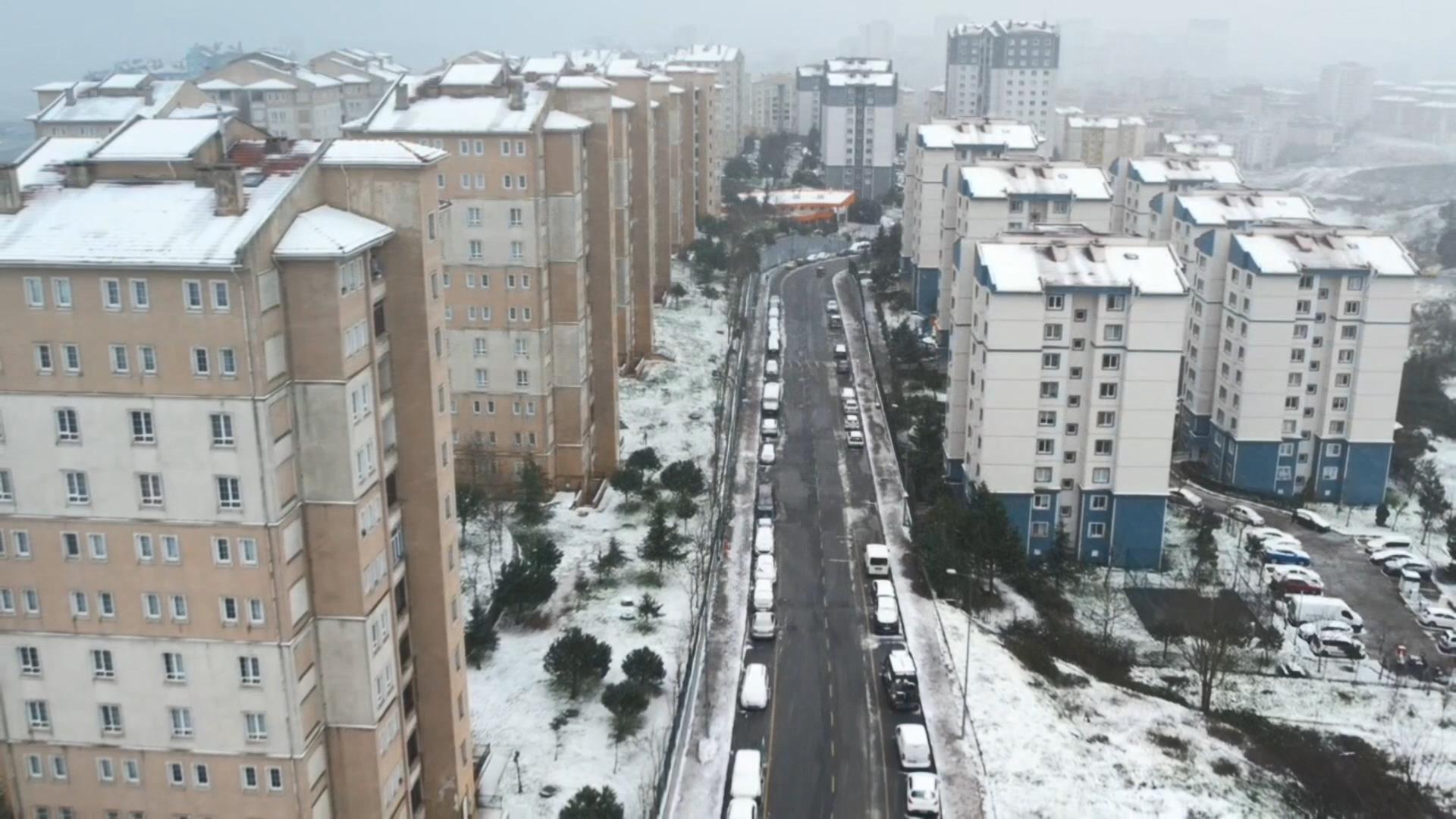 Başakşehir Kayabaşı Mahallesi'nde kar yağışı havadan görüntülendi. İlçede devam eden kar yağışı sonrası yollar ve binaların çatıları beyaz örtüyle kaplandı. Kar yağışının İstanbul'da aralıklarla etkili olması bekleniyor.