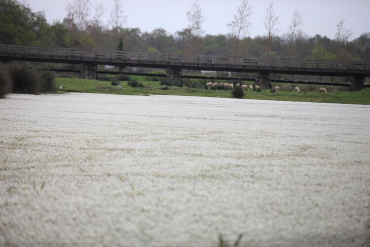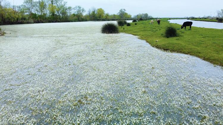 Samsun'un 19 Mayıs, Bafra ve Alaçam ilçeleri sınırlarında bulunan, Kızılırmak'ın denize döküldüğü bölgeyi de içine alan 56 bin hektar alana sahip Kızılırmak Deltası Kuş Cenneti’nde bulunan su düğün çiçekleri görenleri etkiliyor.