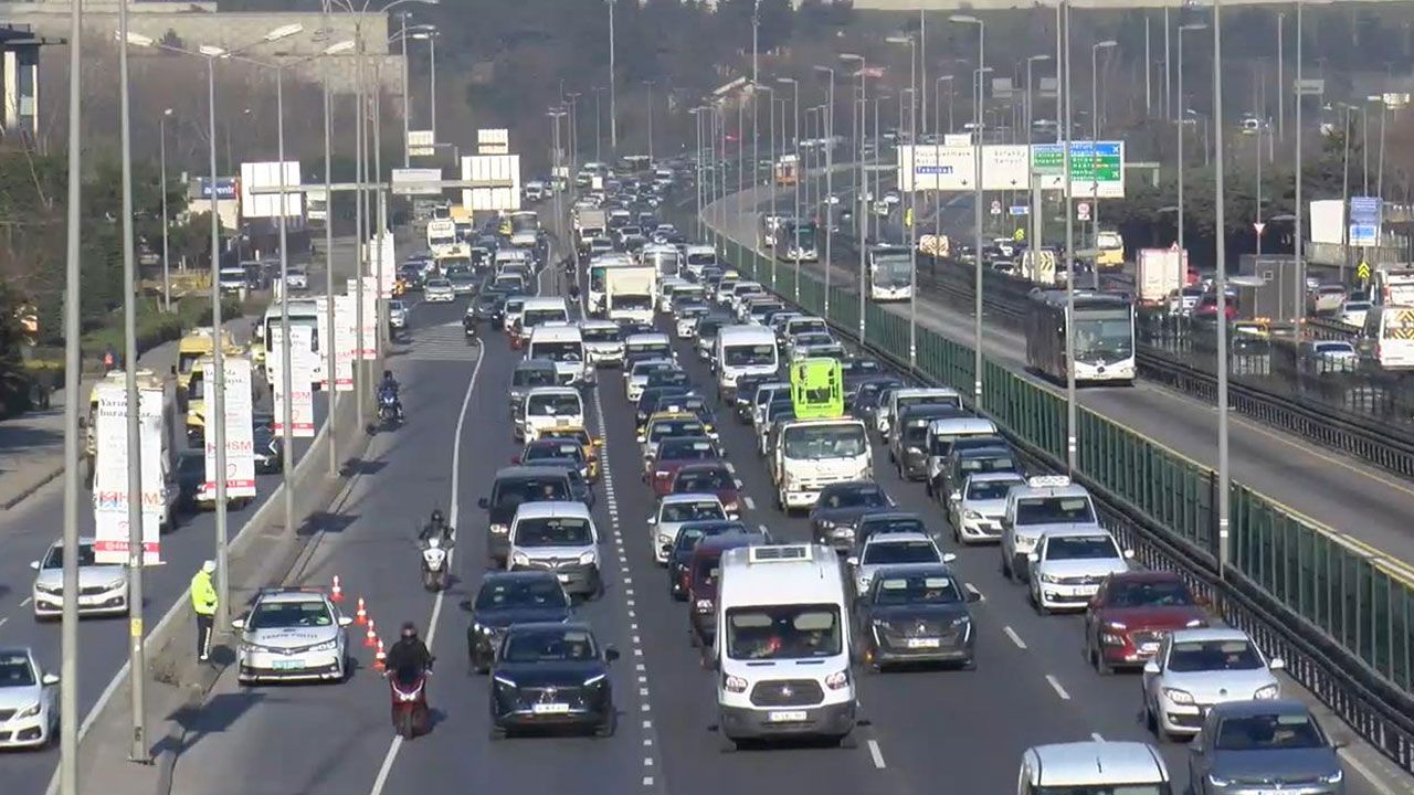 İstanbul'da haftanın ilk iş gününde trafik yoğunluğu oluştu. İBB Trafik Yoğunluk Haritası'na göre trafik yoğunluğu saat 08.15 itibarıyla yüzde 69'a ulaştı.