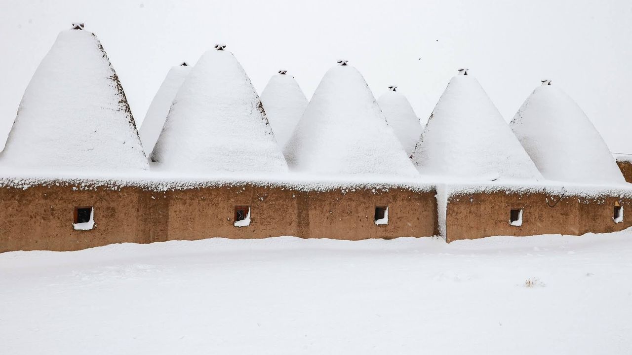 Tarihi ve kültürel zenginlikleri ile dikkat çeken Şanlıurfa'nın Harran ilçesinde ilk İslam Üniversitesi’nin kalıntıları ve konik kubbeli kümbet evleri, yerli ve yabancı turistlerin ilgisini çekiyor. Özellikle yaz aylarında yüksek sıcaklık değerlerinin hissedildiği ilçeyi ziyaret eden yerli ve yabancı turistler, mimarisi dolayısıyla doğal olarak yazın serin, kışın da sıcak olan evlere hayran kalırken, kentte etkili olan kar yağışı ile birlikte kümbet evlerde güzel görüntüler oluştu.