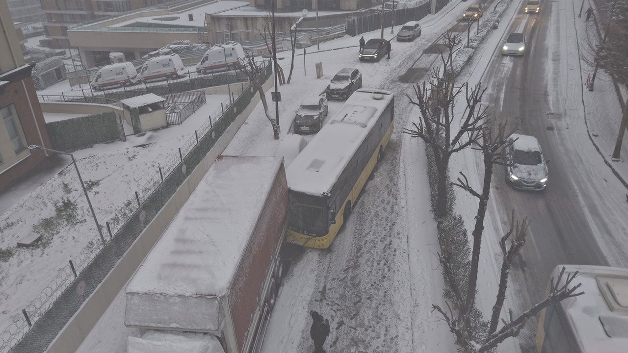 İstanbul'da etkili olan kar yağışı kazaları da beraberinde getirdi. Bir İETT otobüsü, Bahçelievler'de karlı yolda kayarak park halindeki kamyona çarptı. Kazada sonrası araçta hasar oluştu.