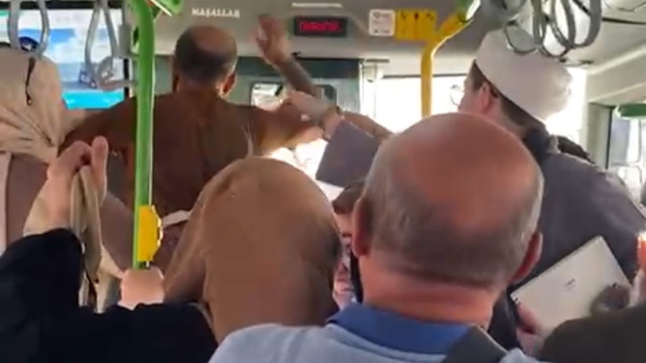 Kağıthane’de ise kalabalık nedeniyle otobüse arka kapıdan binen yolcular arasında 'Ayağıma bastın' tartışması kısa sürede kavgaya dönüştü. Kavga çevredeki vatandaşların araya girmesiyle sona ererken kavga anları cep telefonuna yansıdı.