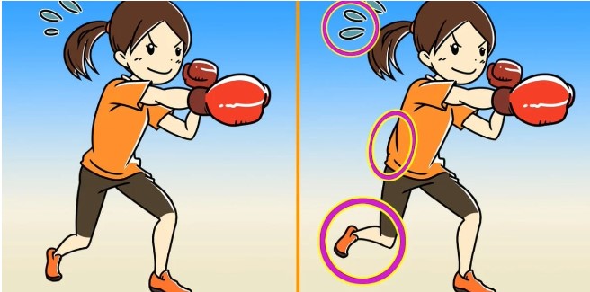 Gösterilen resimde, yan yana neredeyse aynı iki figüre sahipsiniz. Bunlar, eldivenli, boks hareketleri yapan genç bir kızı temsil eden iki resimdir. İki figürü birbirinden ayıran üç unsur vardır. Senin görevin hepsini bulmak olacak. İlk başta kolay görünüyor. Ancak, onları hızlı bir şekilde bulmayı ummak için konsantrasyonunuzu ve gözleminizi kullanmanız gerekir. Gerçekten de, bu görsel mücadeleyi geçmek için sadece 15 saniyeniz olacak. Bu süre sınırı, zekanızı diğer meydan okuyuculara kıyasla daha iyi ölçmek için ayarlandı. Süre sınırını aşmak, testte başarısız olduğunuz anlamına gelir. Bu, bu IQ testi için geri sayıma başlamadan önce kendinizi doğru duruma getirmenizi çok önemli kılar. Dikkatinizi odaklamak ve daha iyi bir görüş elde etmek için bir an sessiz kalmaya çalışın.